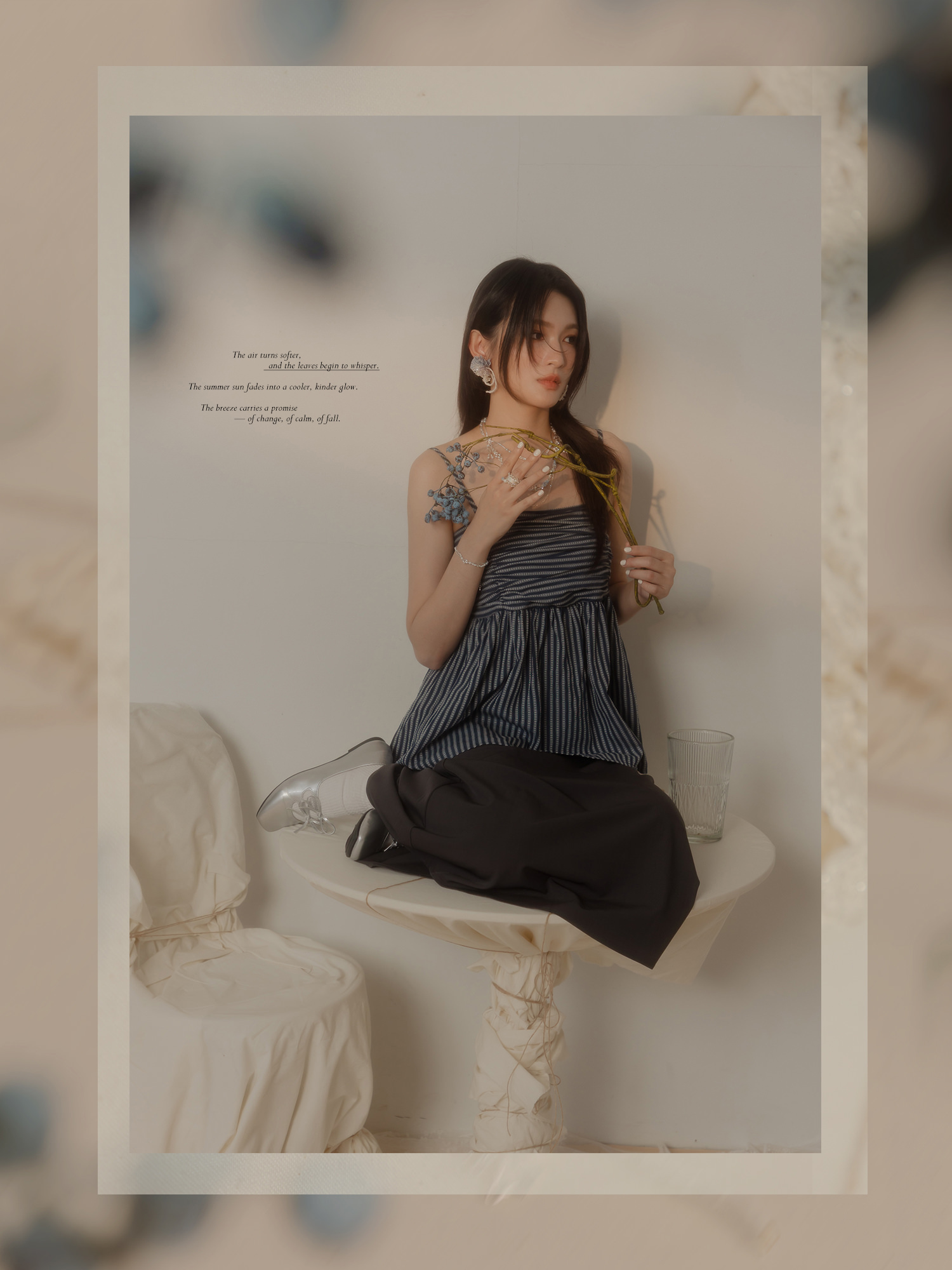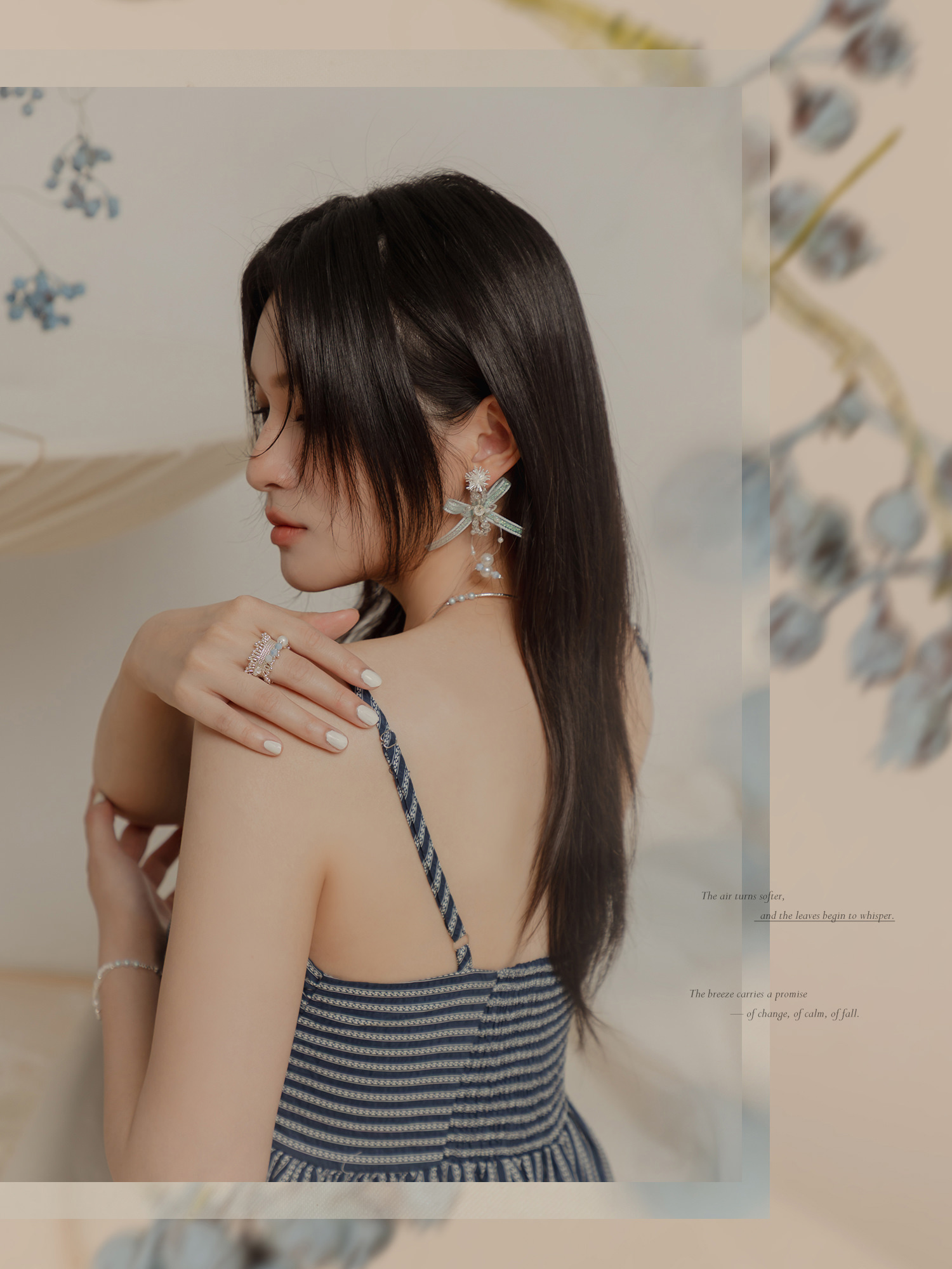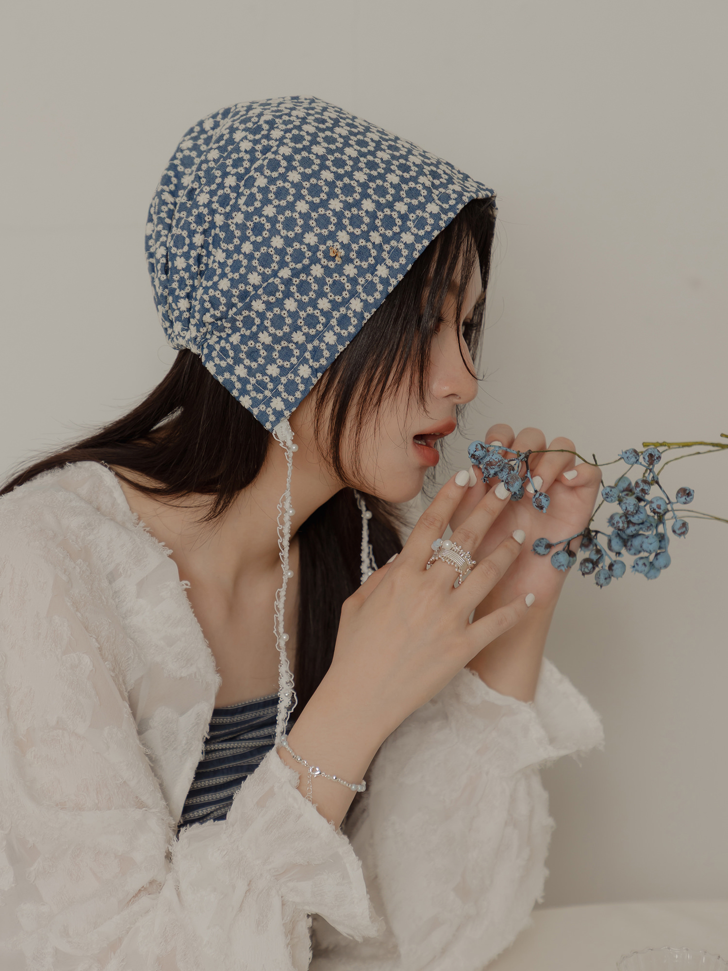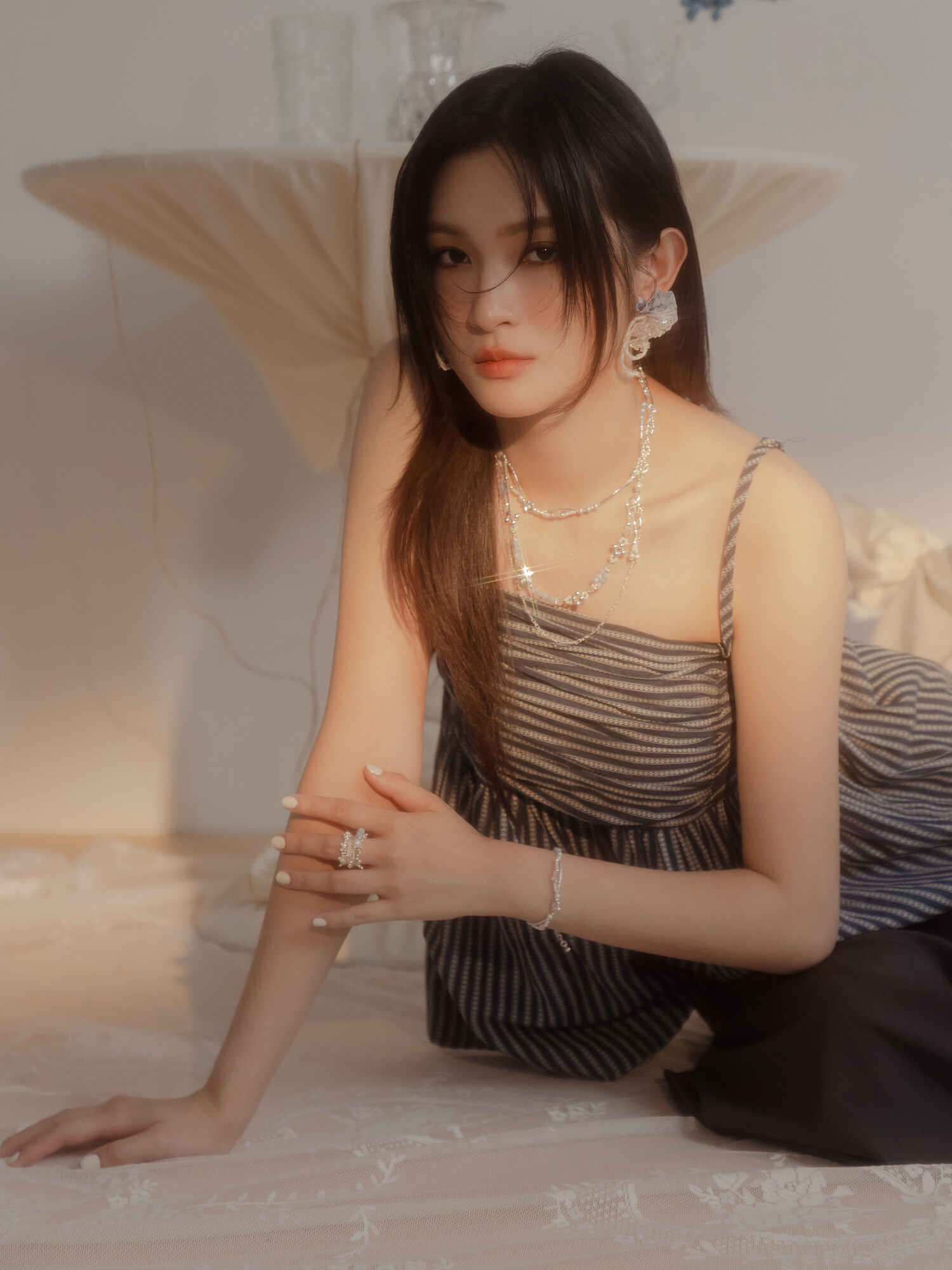 ▸ 素材:銅鍍銀、仿珠、三角水晶珠、串珠等複合材質