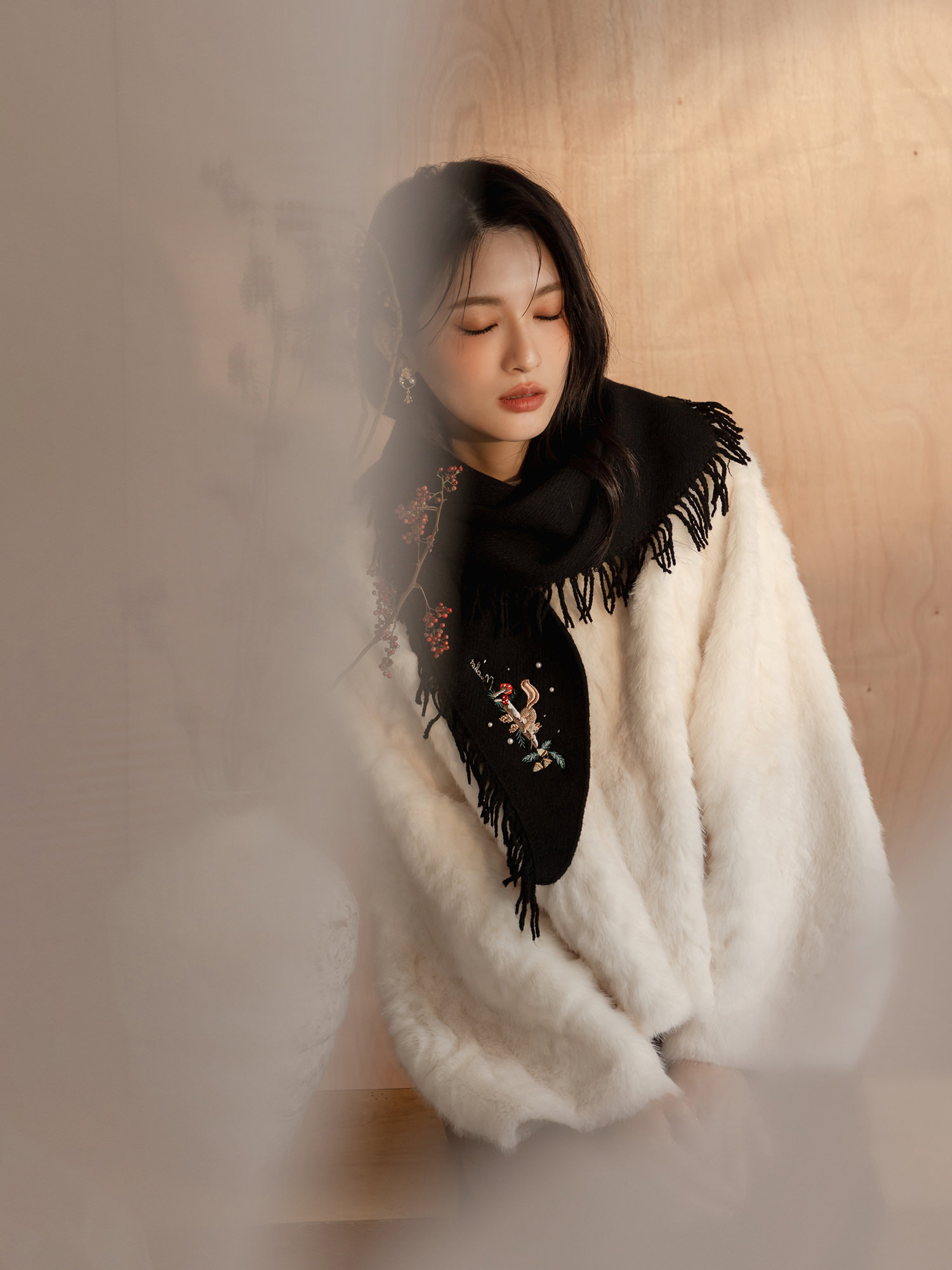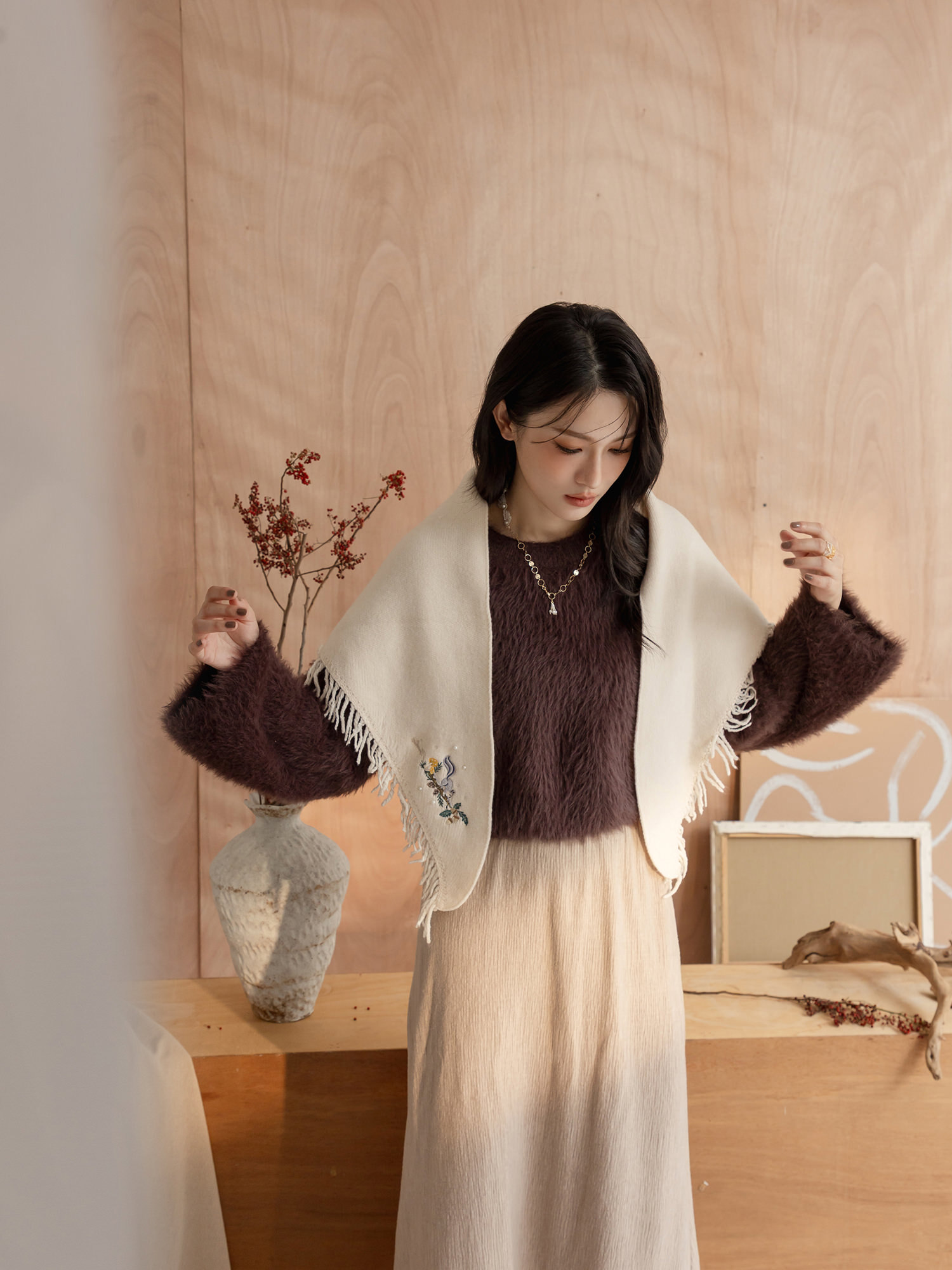▸ 素材:40%羊毛、60%羊絨、繡線、仿珠等複合材質