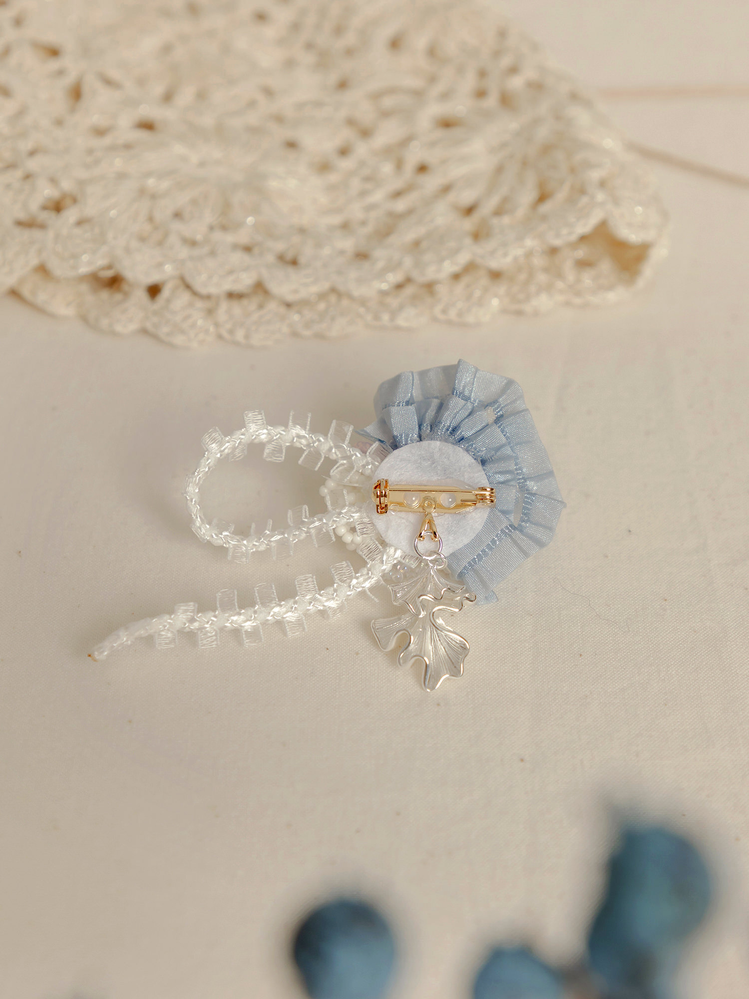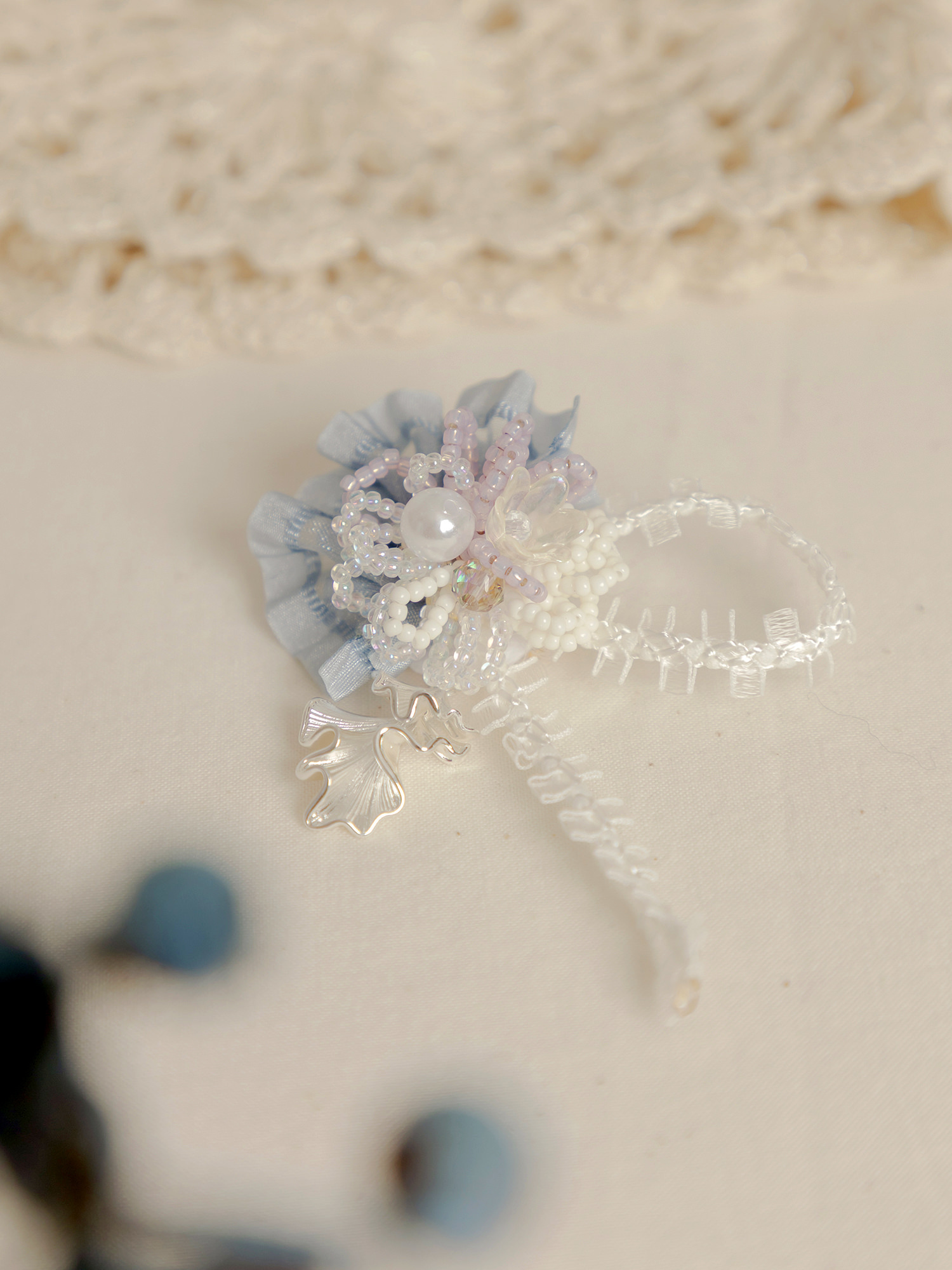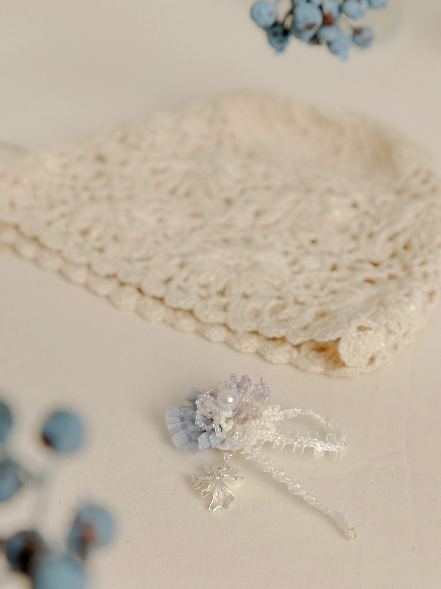 ▸ 素材:聚酯纖維、銅鍍14KGP、銅鍍銀、緞帶、串珠、仿珠、樹酯等複合材質