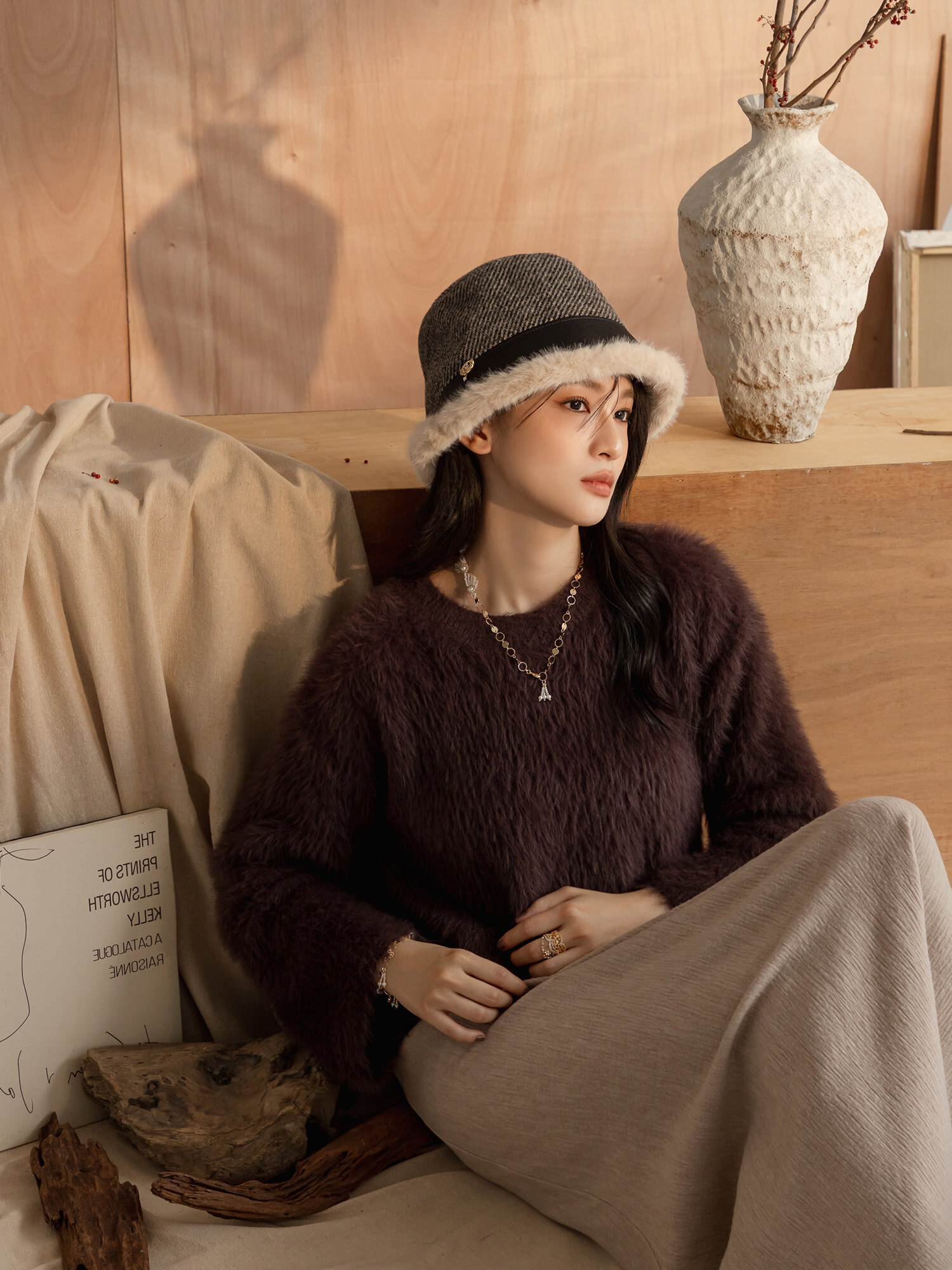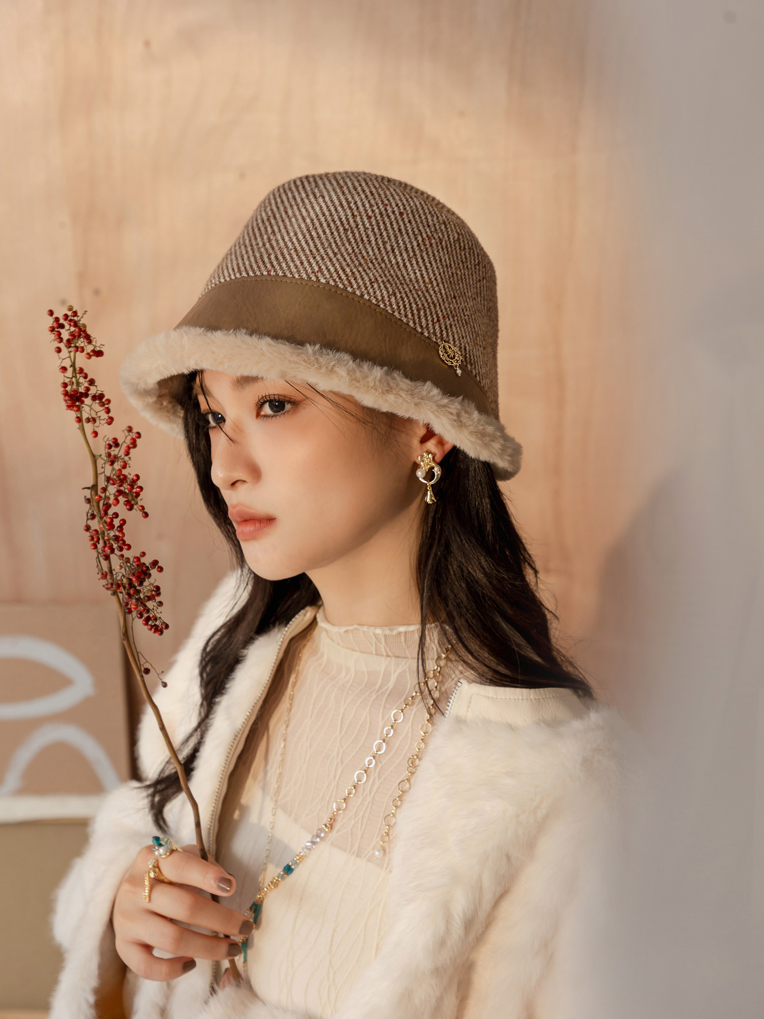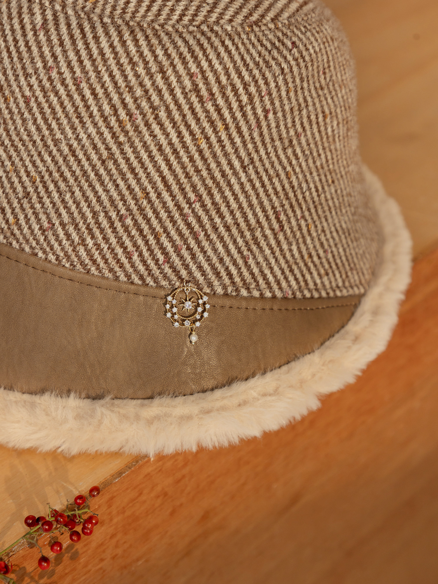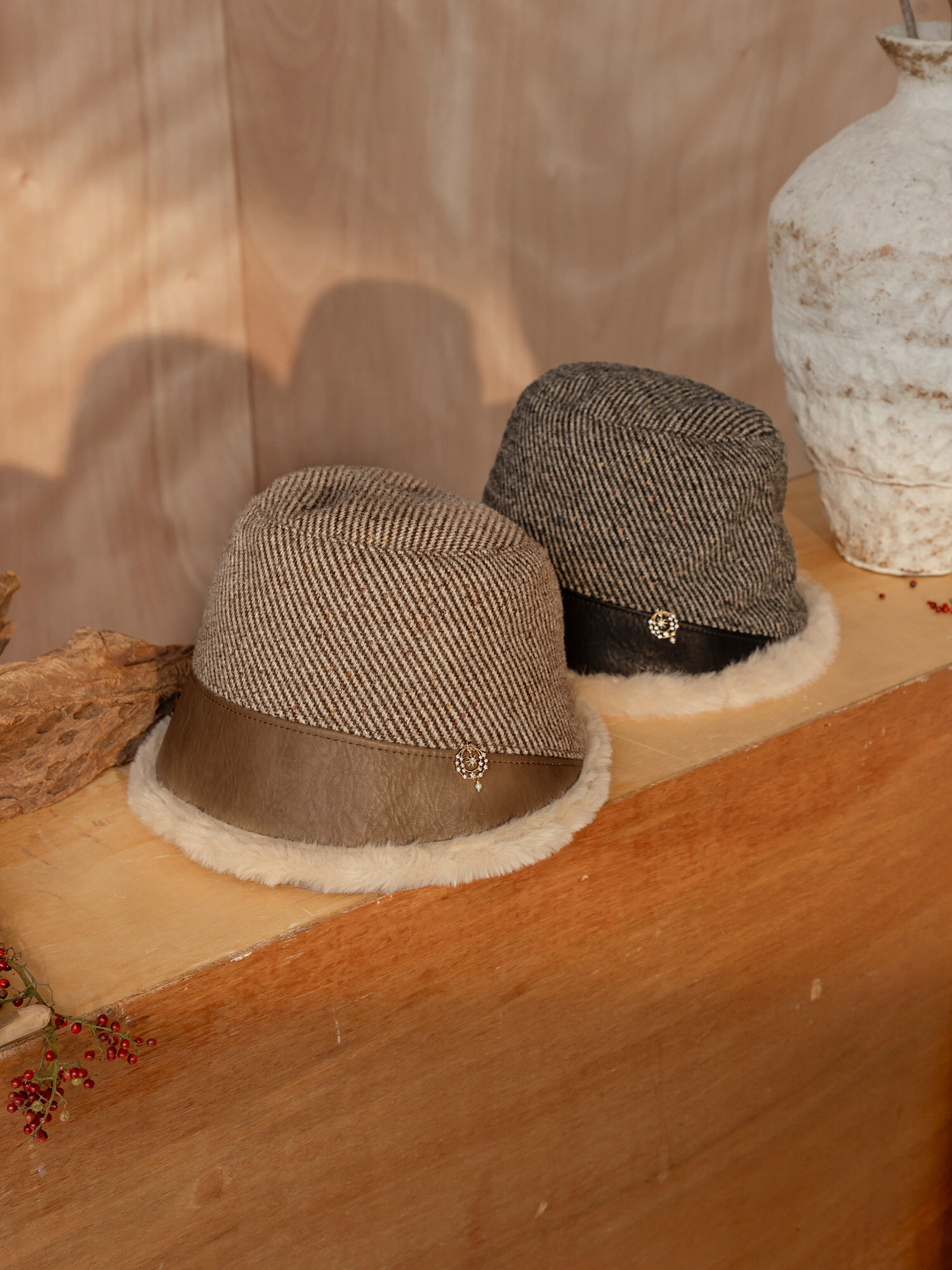北方小鎮。MUCHAT手作星芒皮革毛呢漁夫帽 (黑)