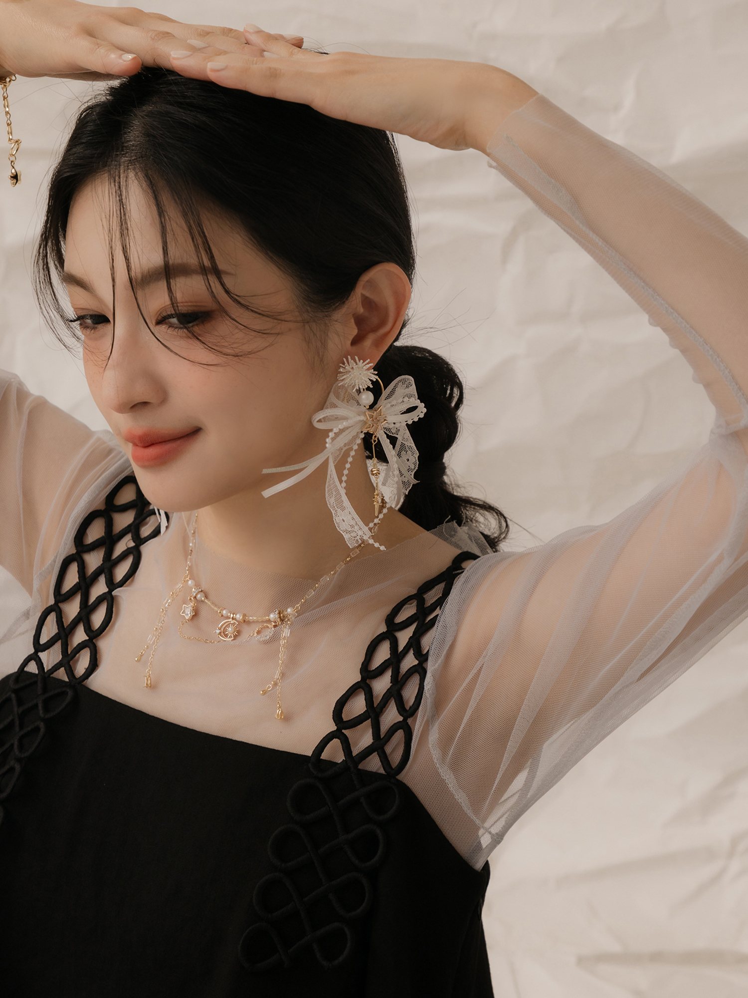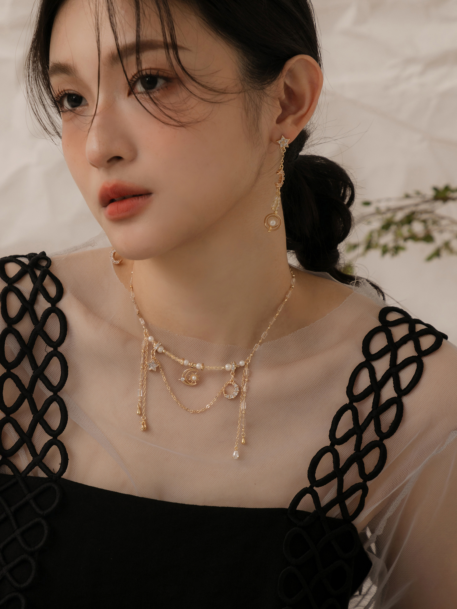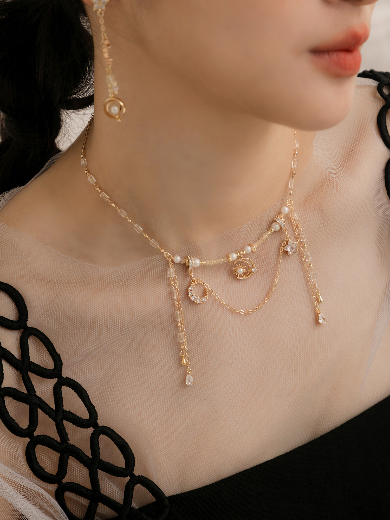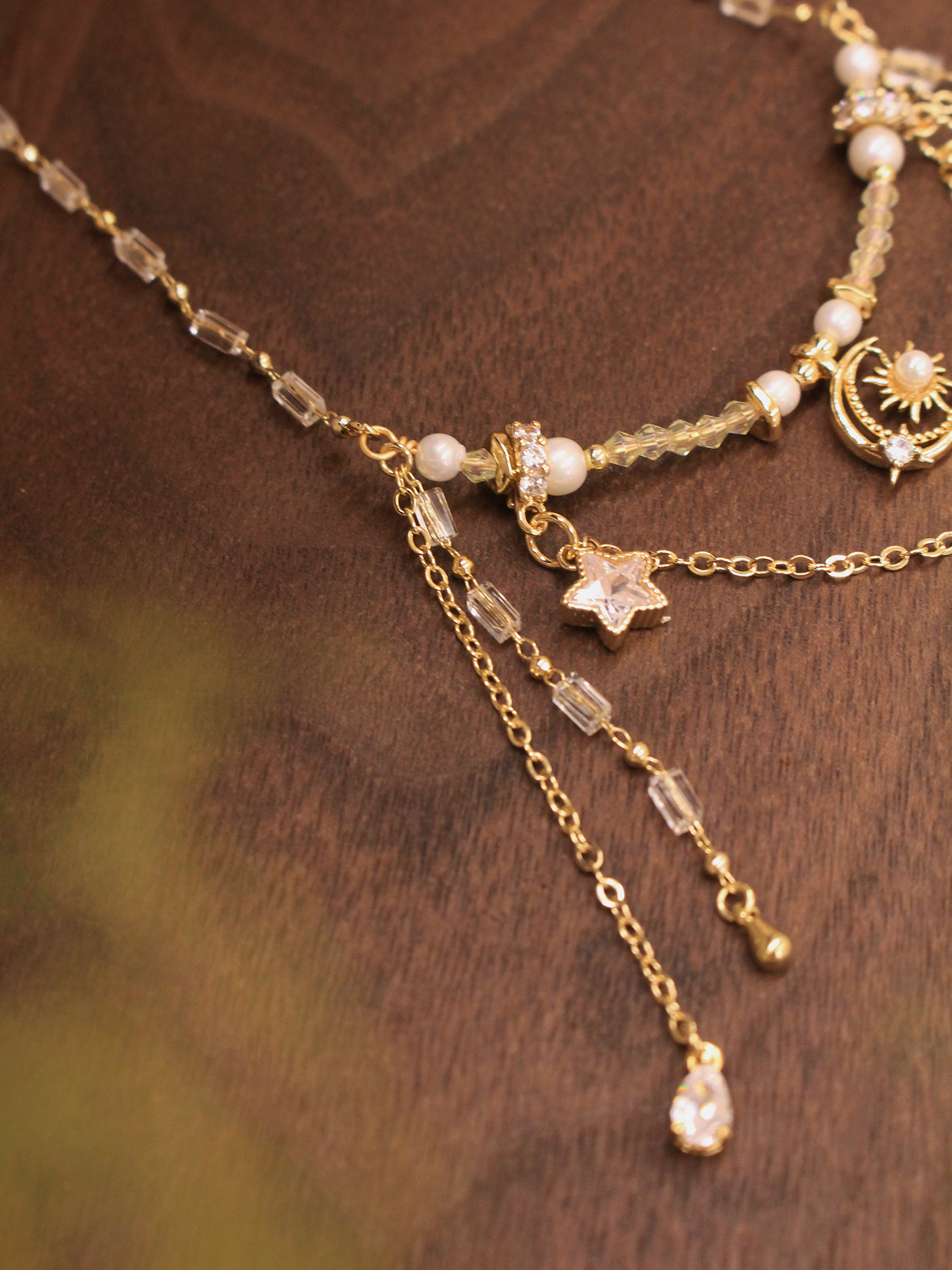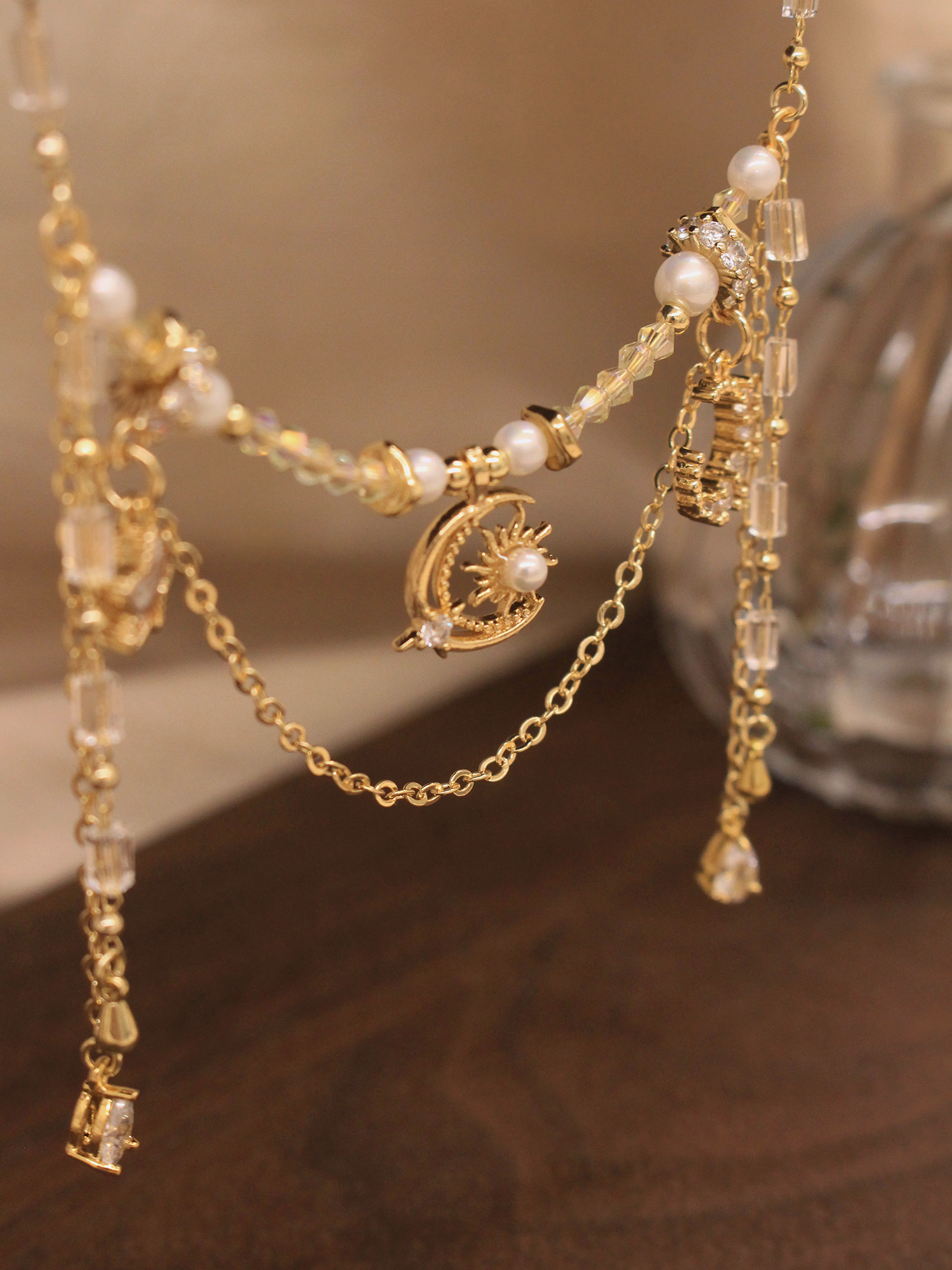 ▸ 素材:銅鍍14KGP、仿珠、鋯石、水晶珠等複合材質