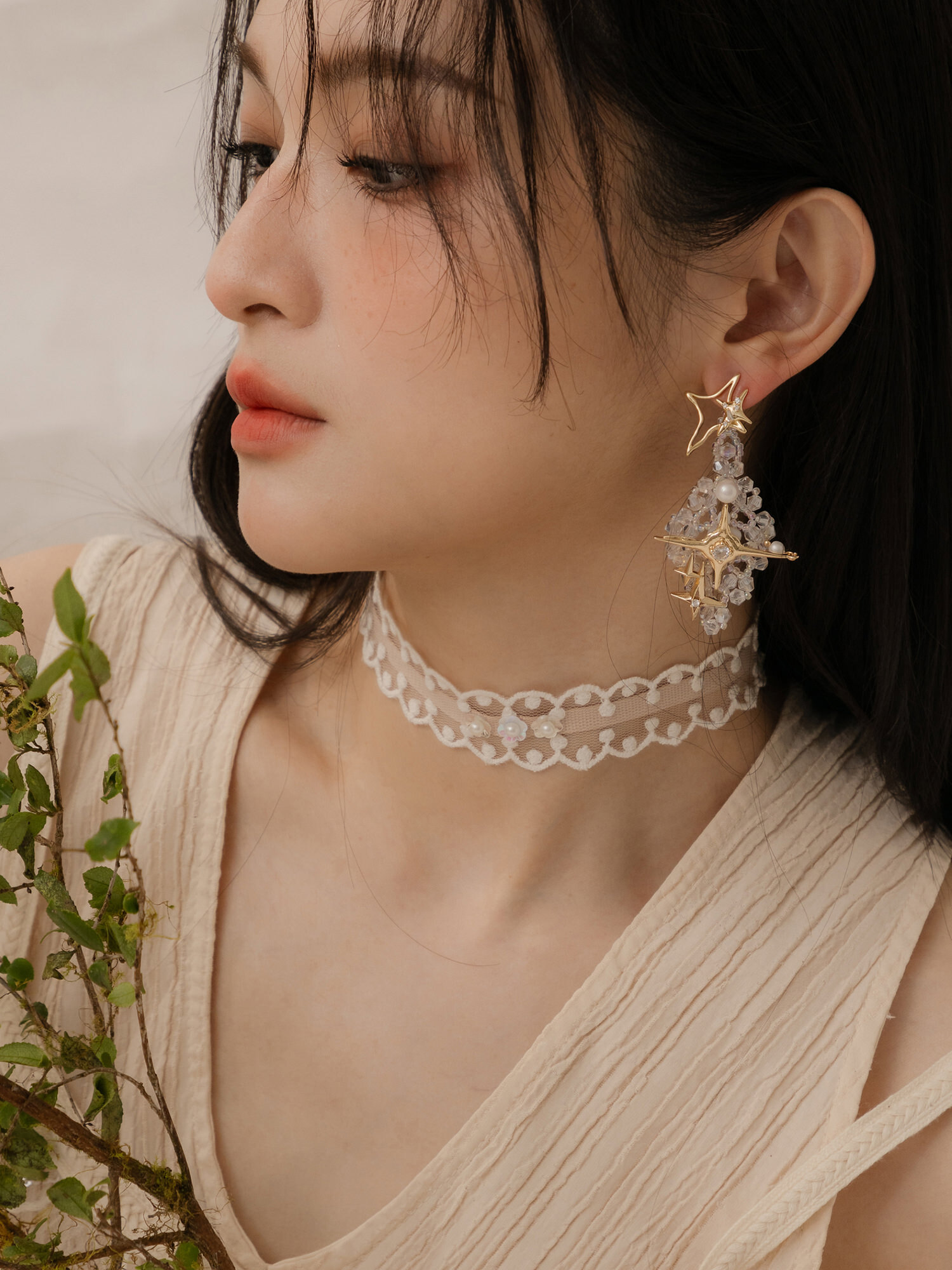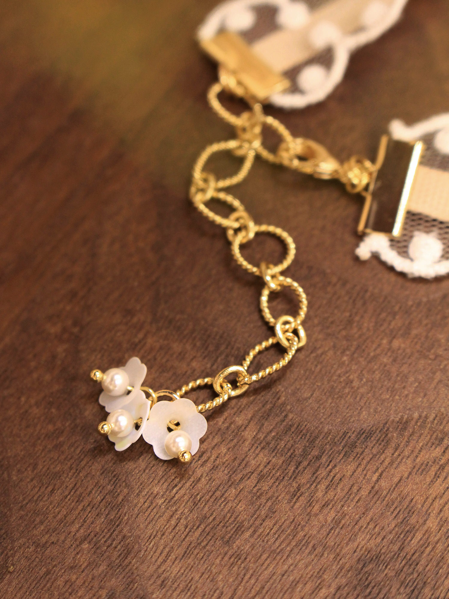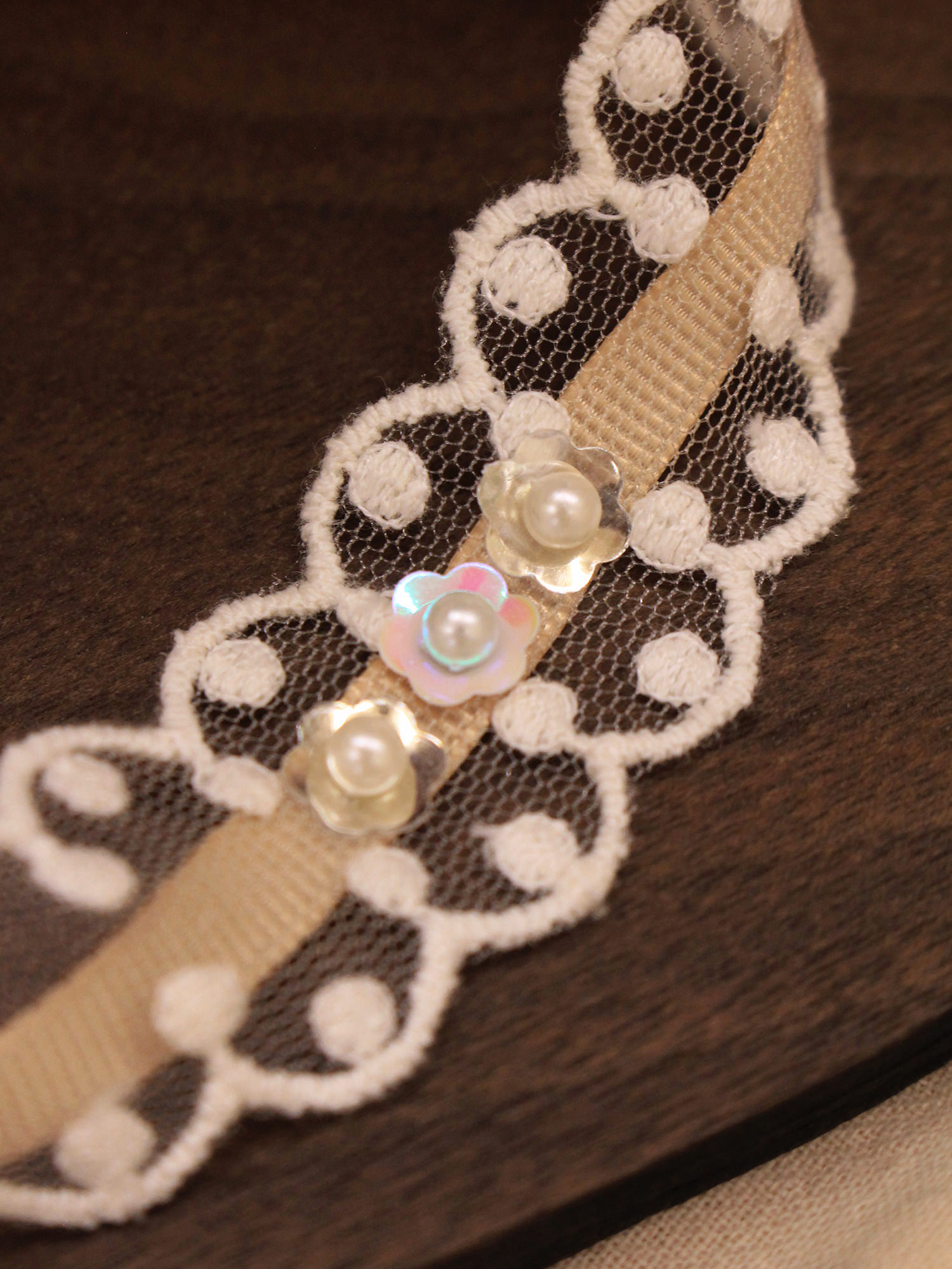 ▸ 素材:銅鍍14+18KGP、仿珠、亮片、緞帶、聚酯纖維等複合材質