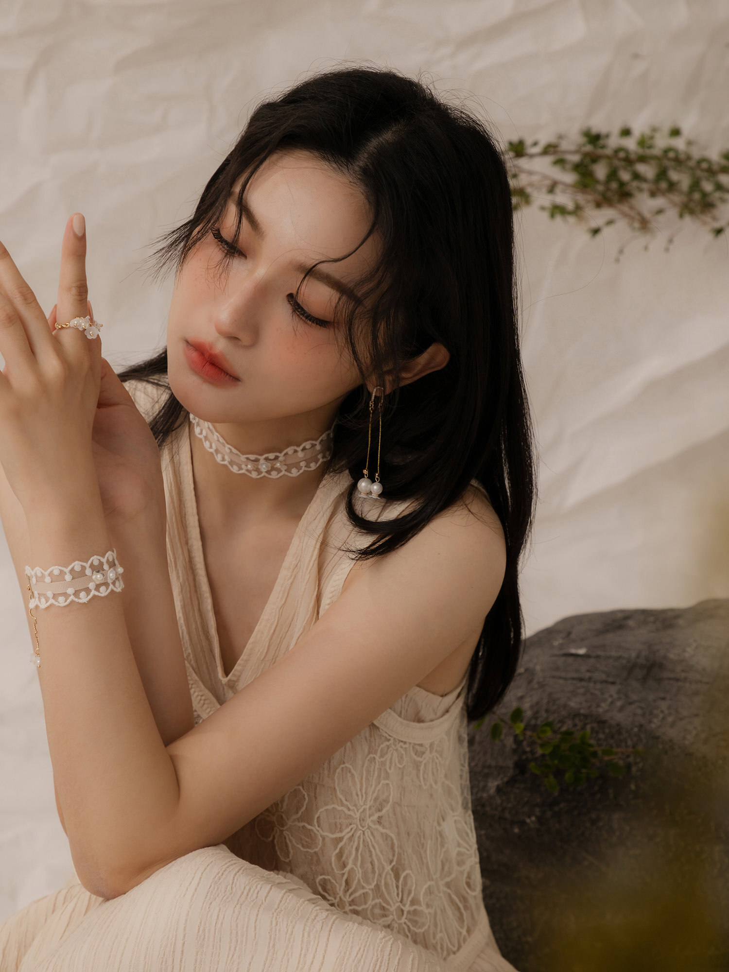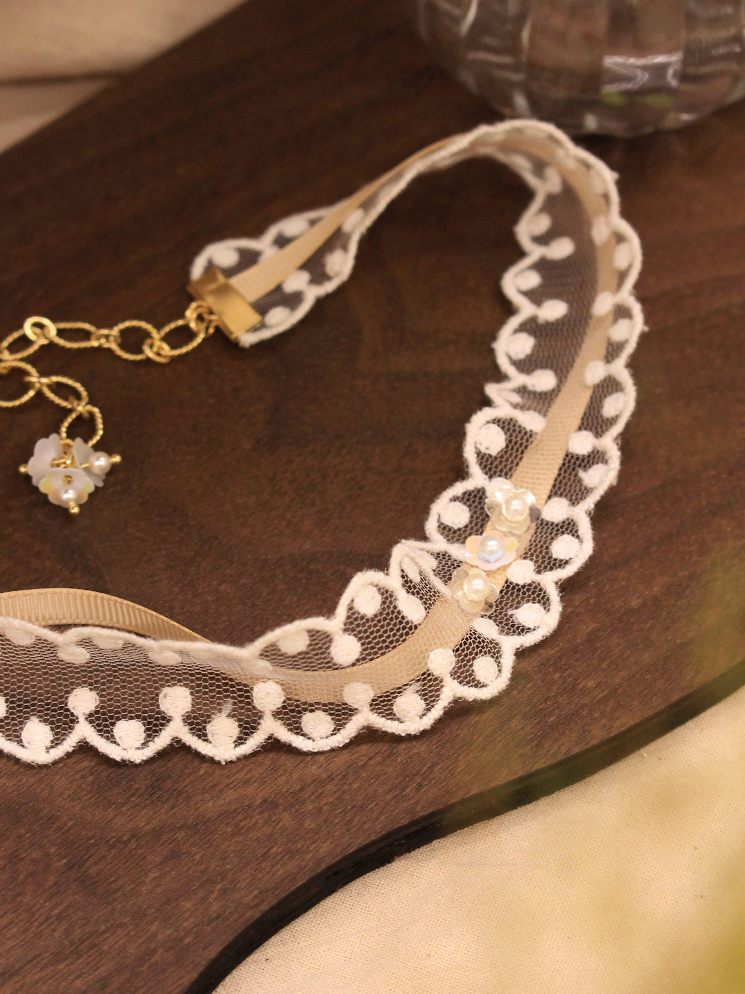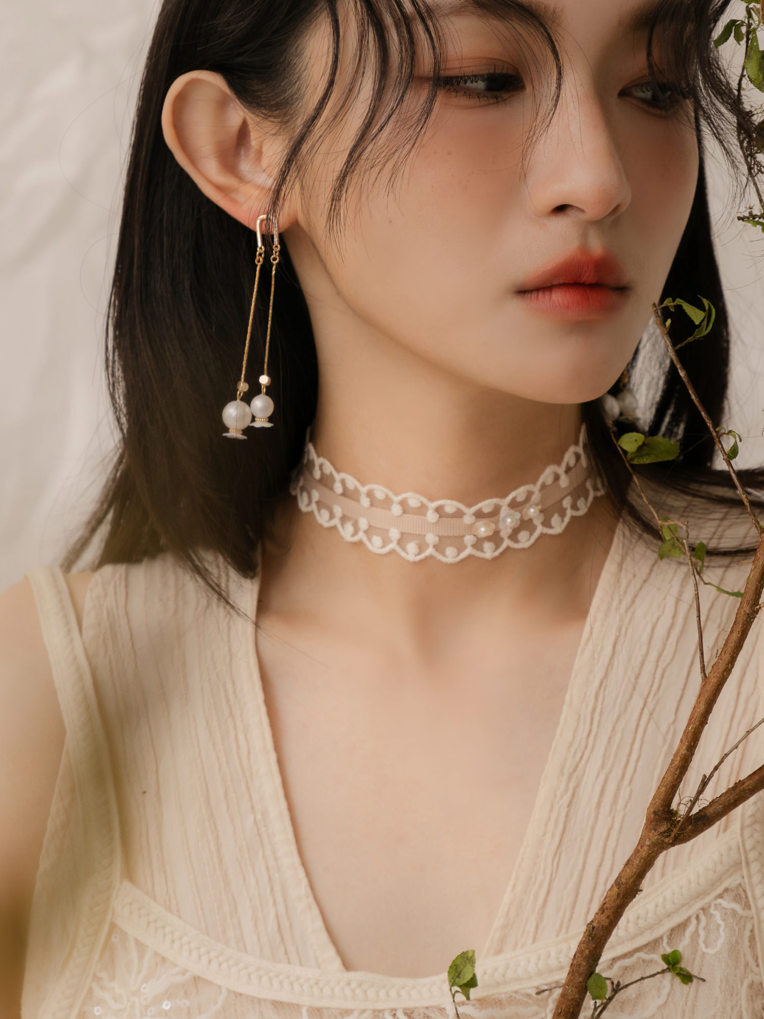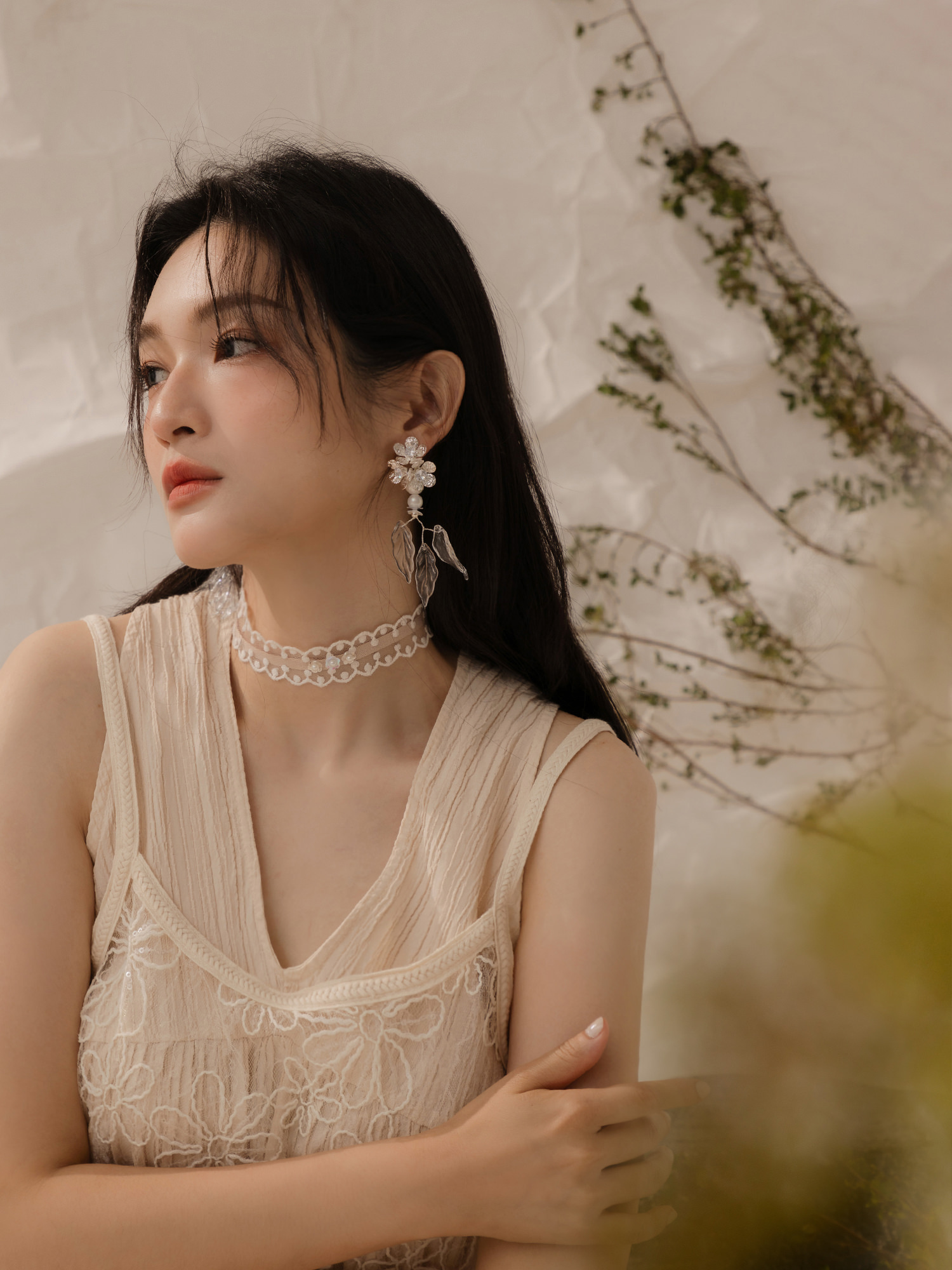 ▸ 素材:銅鍍14+18KGP、仿珠、亮片、緞帶、聚酯纖維等複合材質