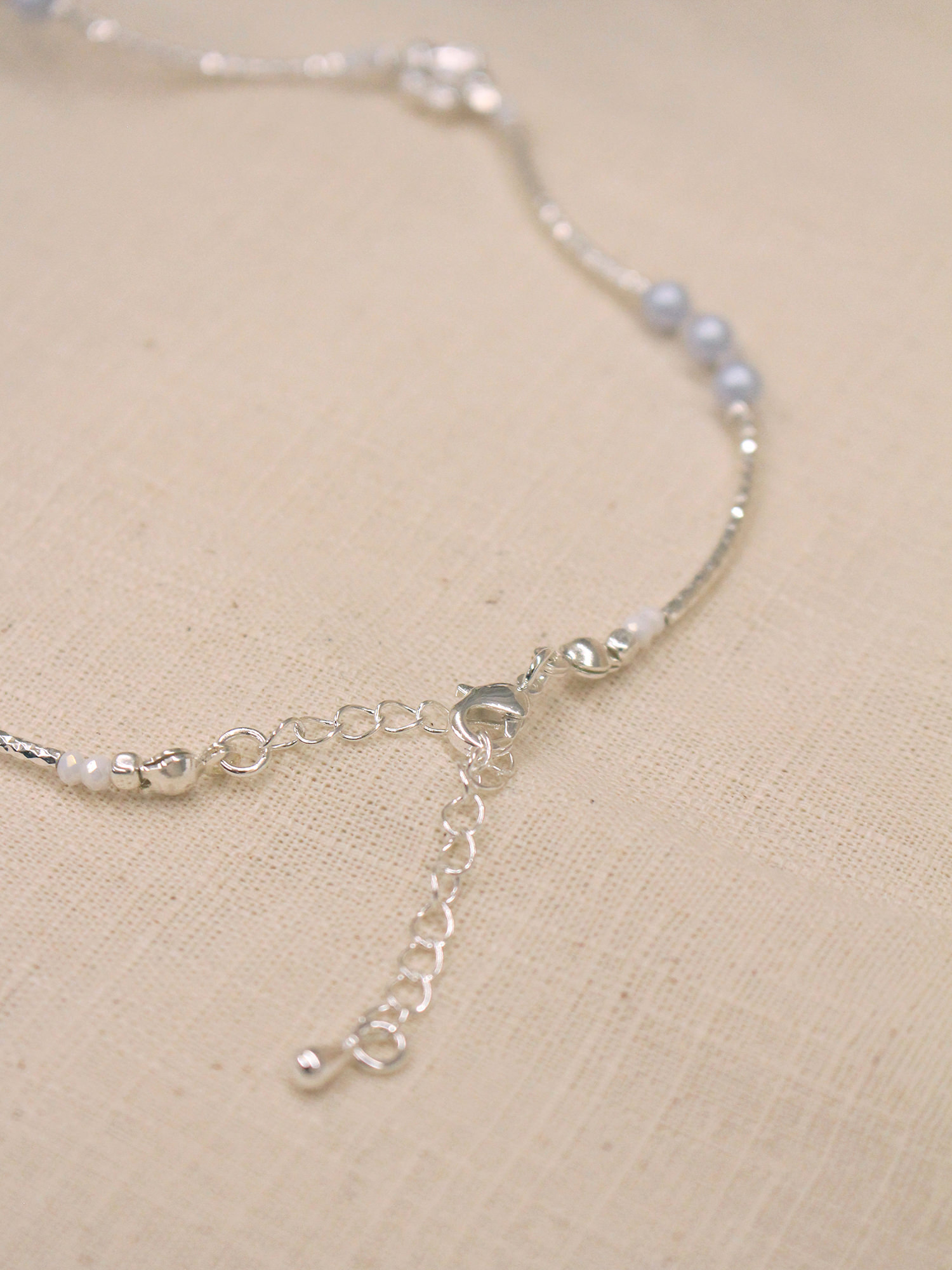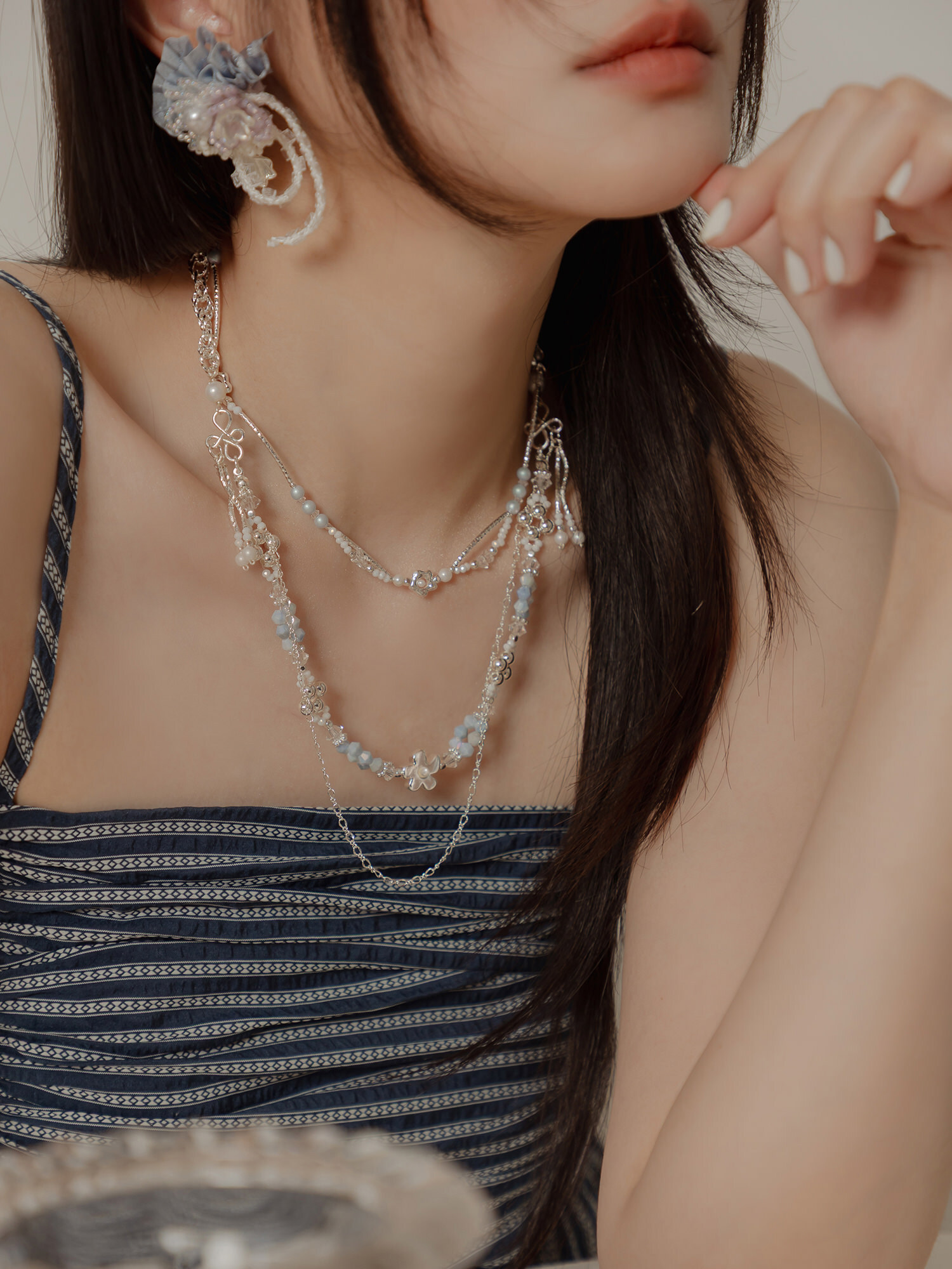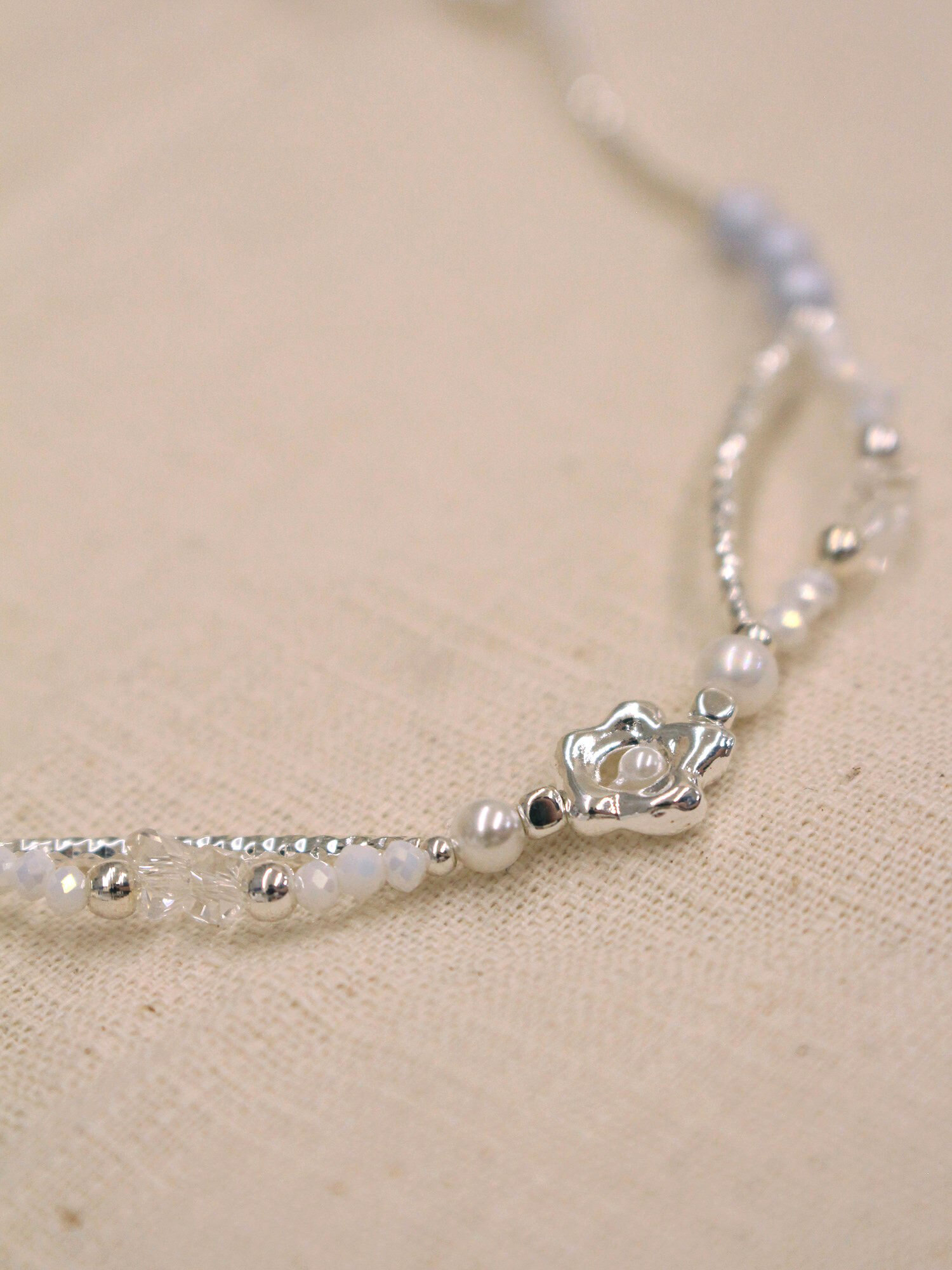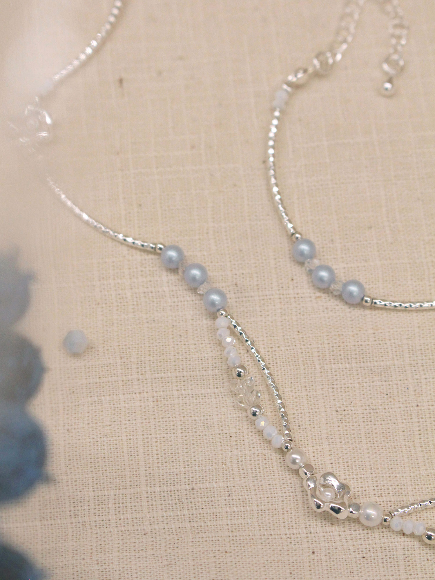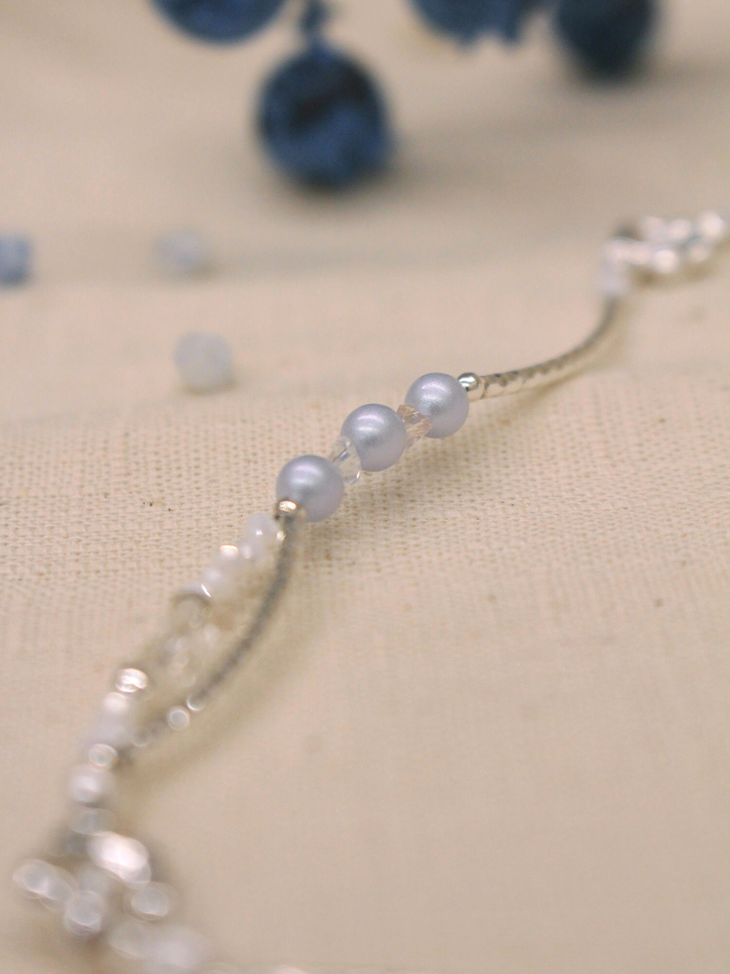 ▸ 素材:銅鍍銀、仿珠、三角水晶珠、串珠等複合材質