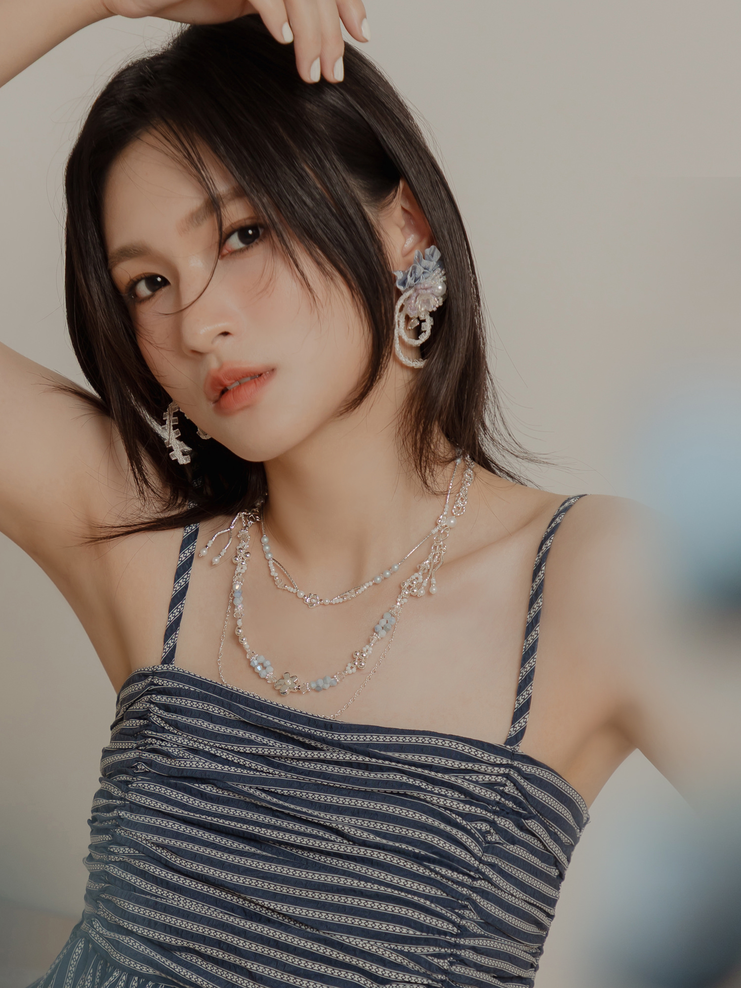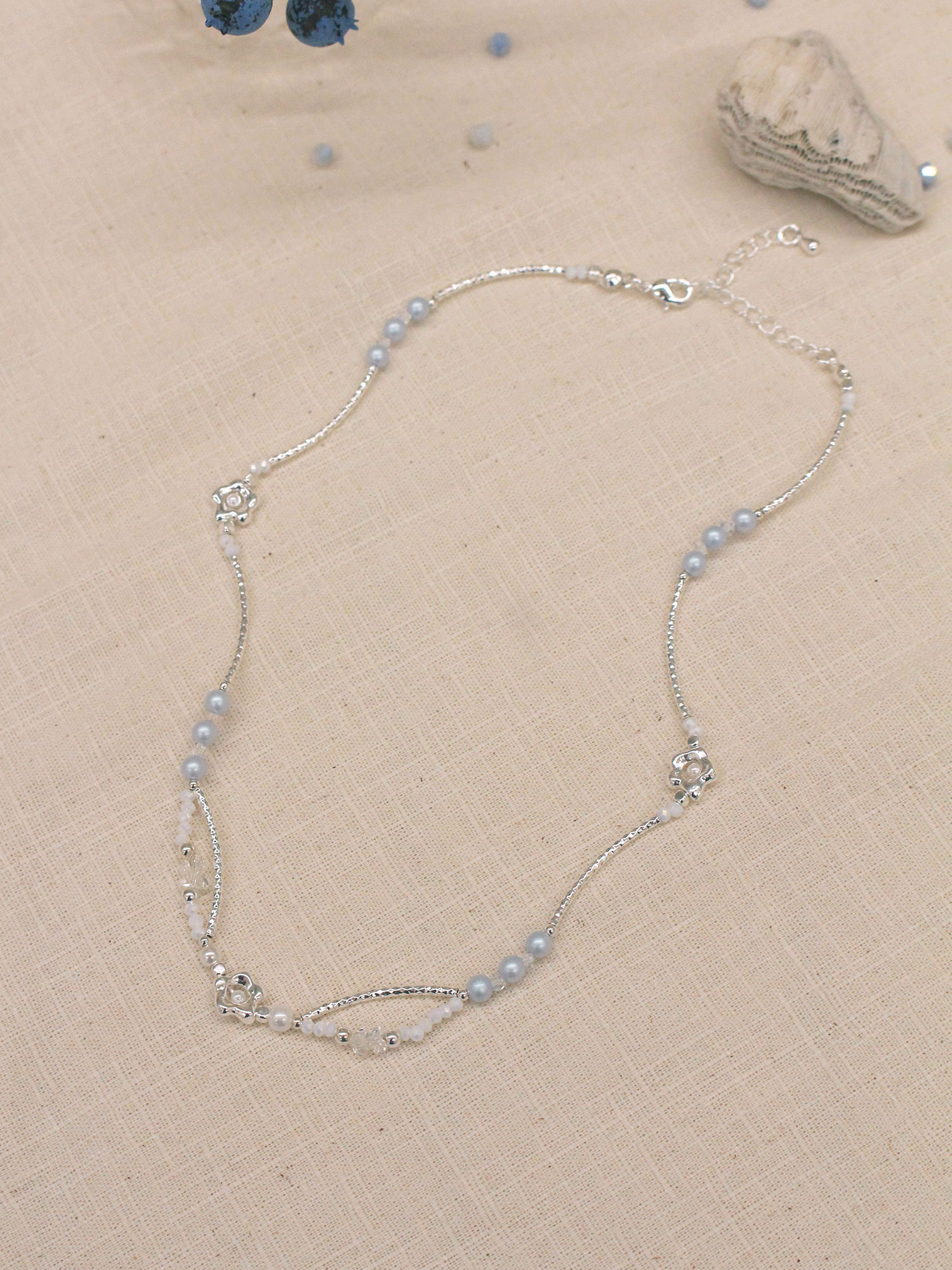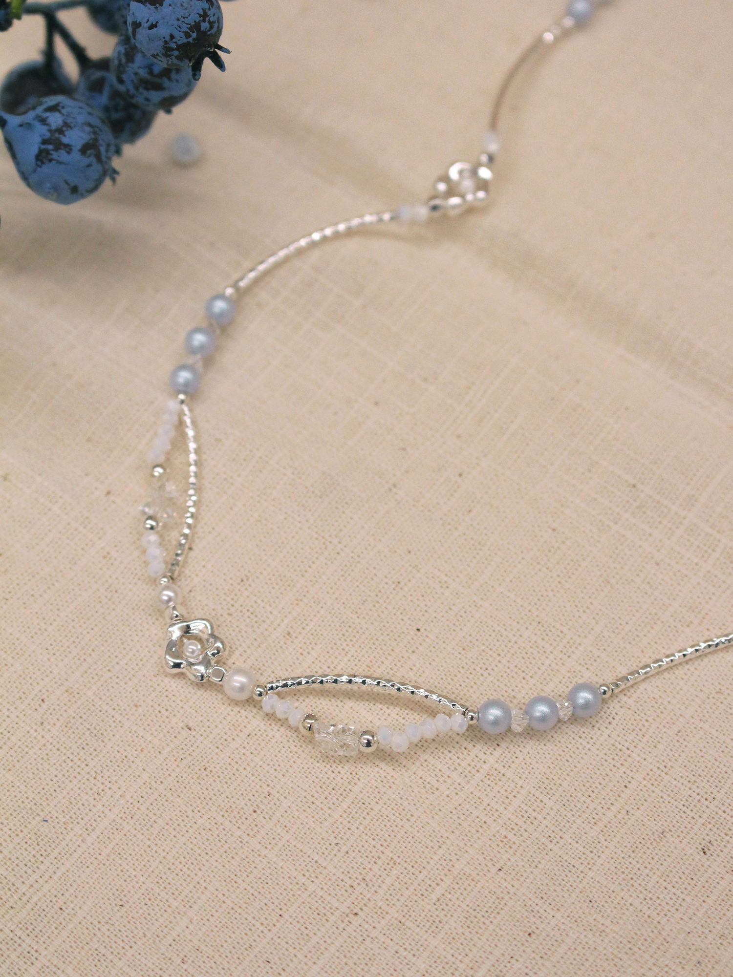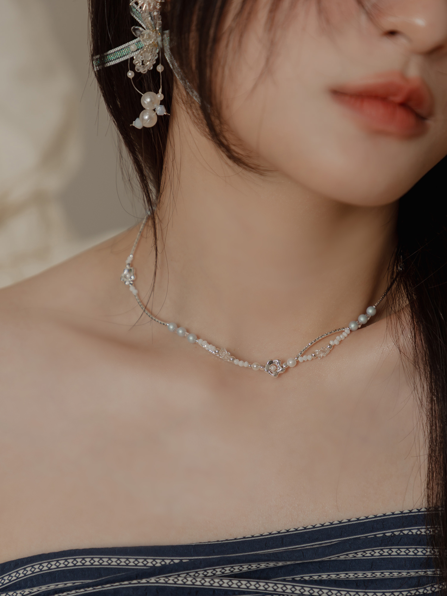 ▸ 素材:銅鍍銀、仿珠、三角水晶珠、串珠等複合材質