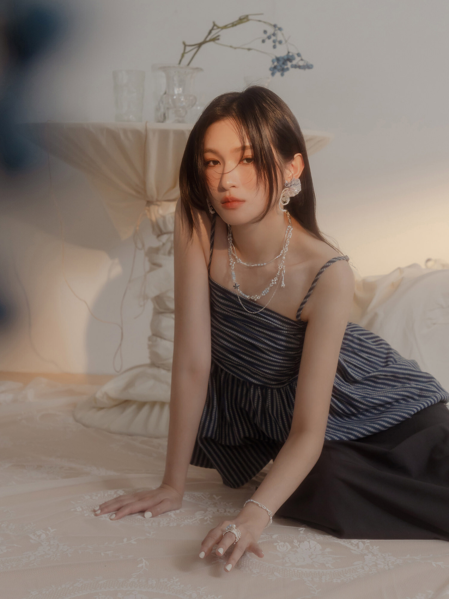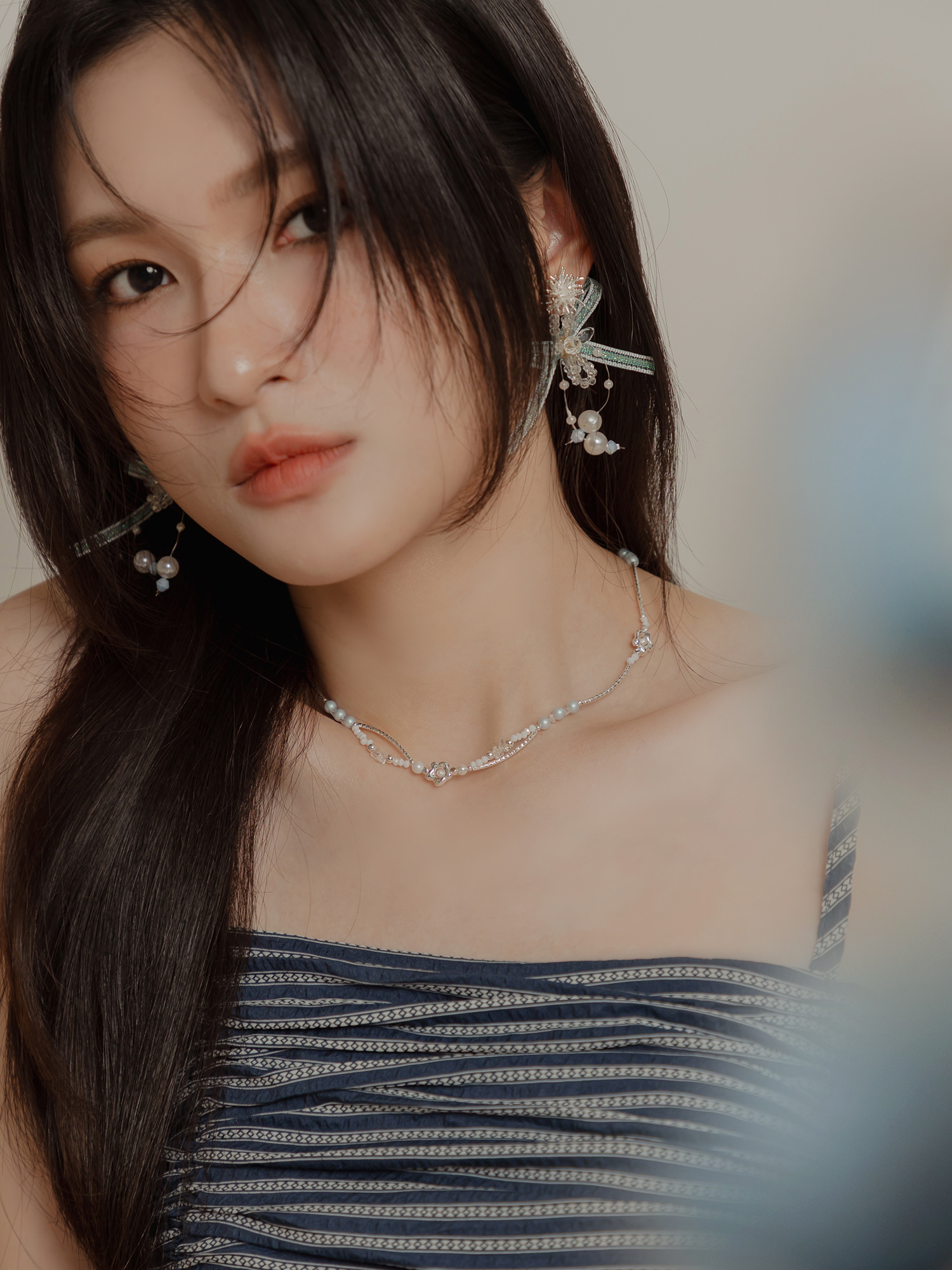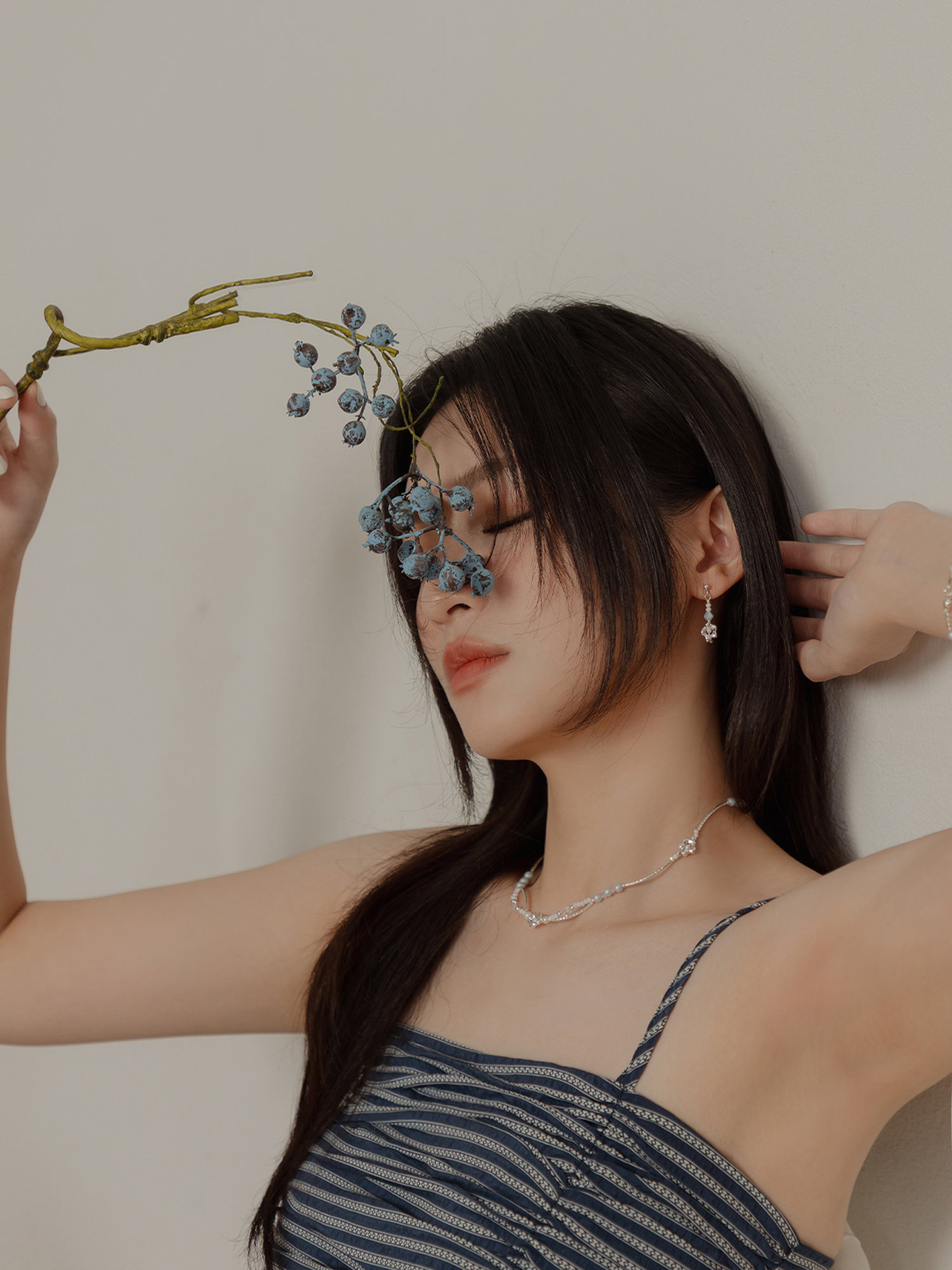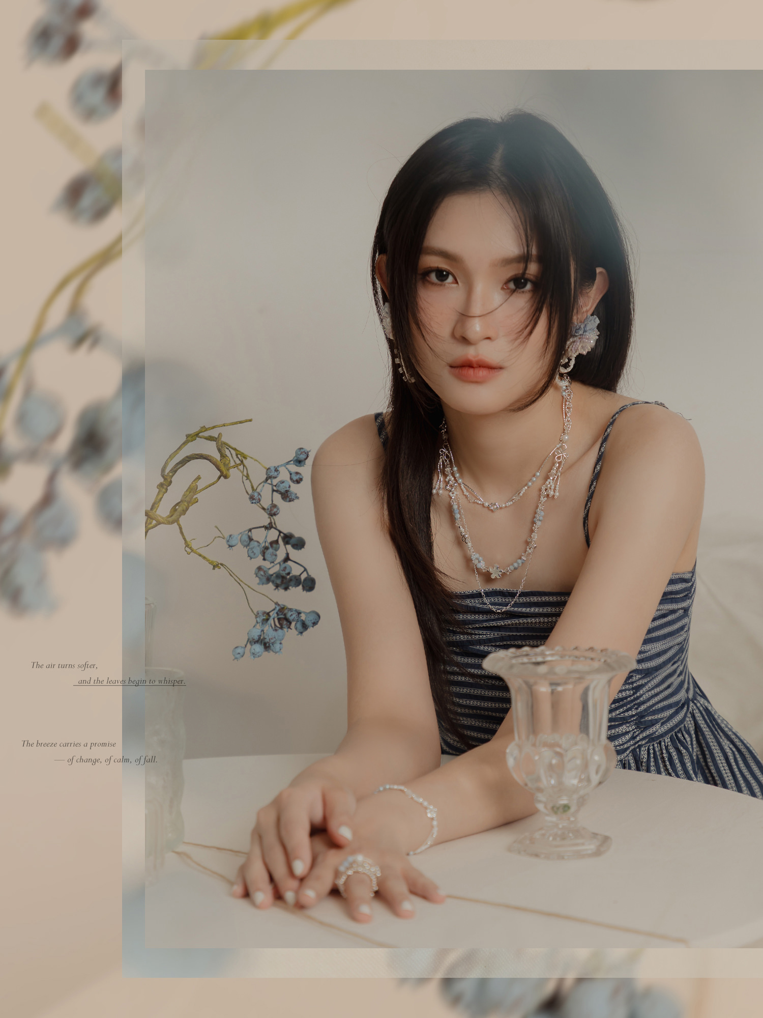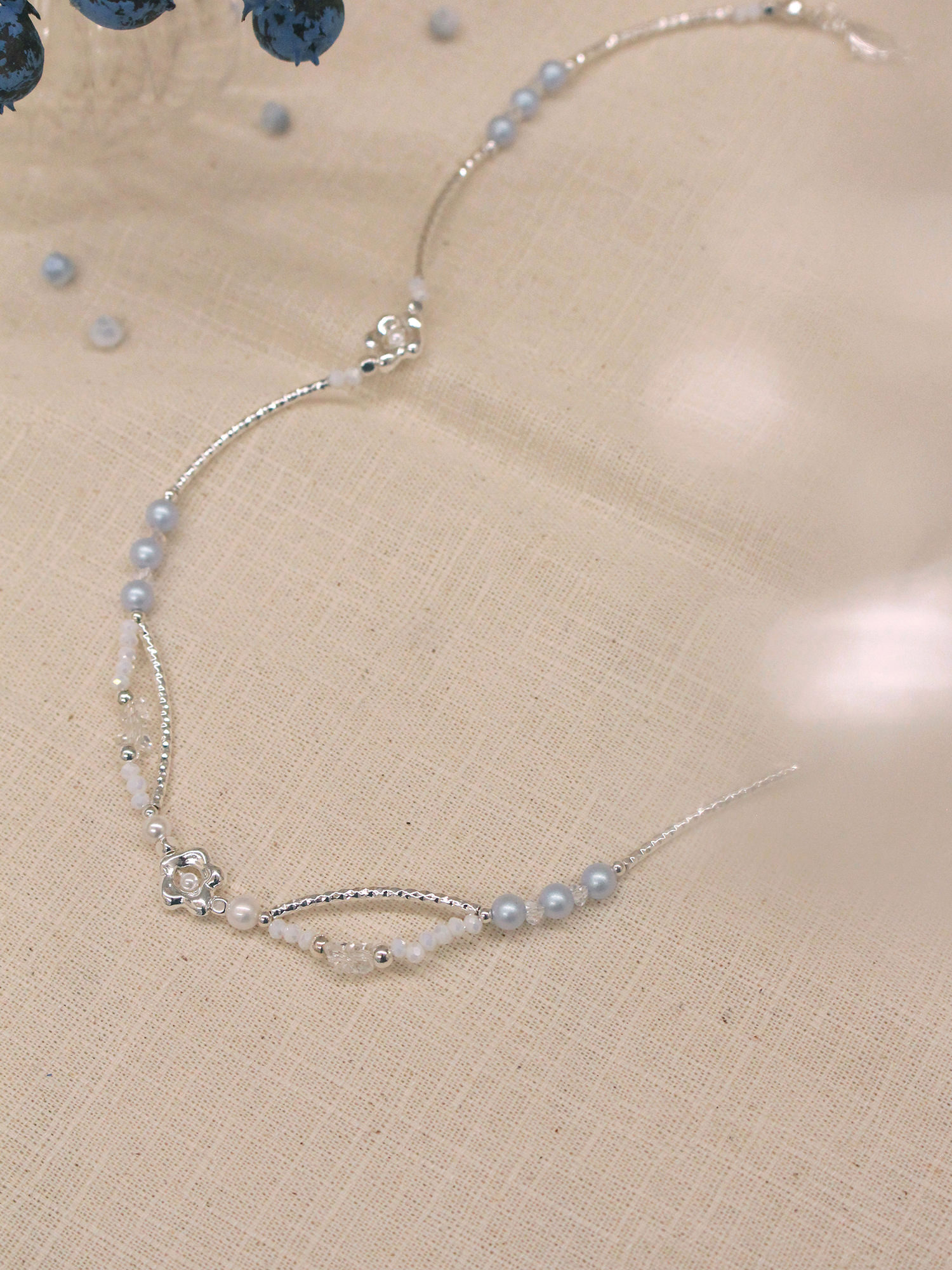 ▸ 素材:銅鍍銀、仿珠、三角水晶珠、串珠等複合材質