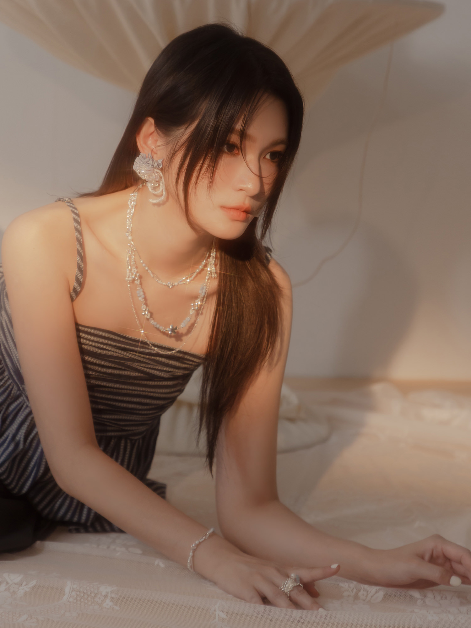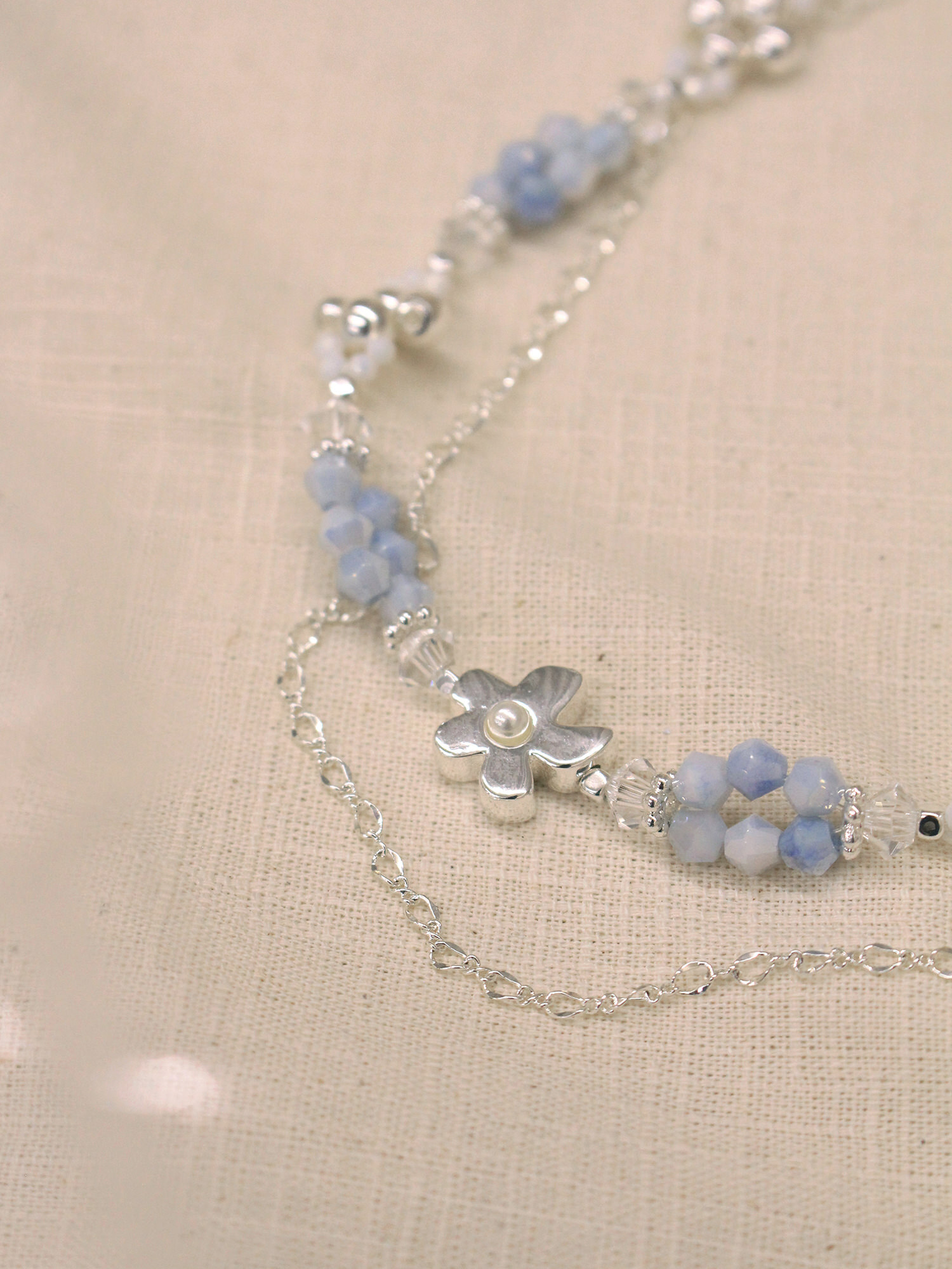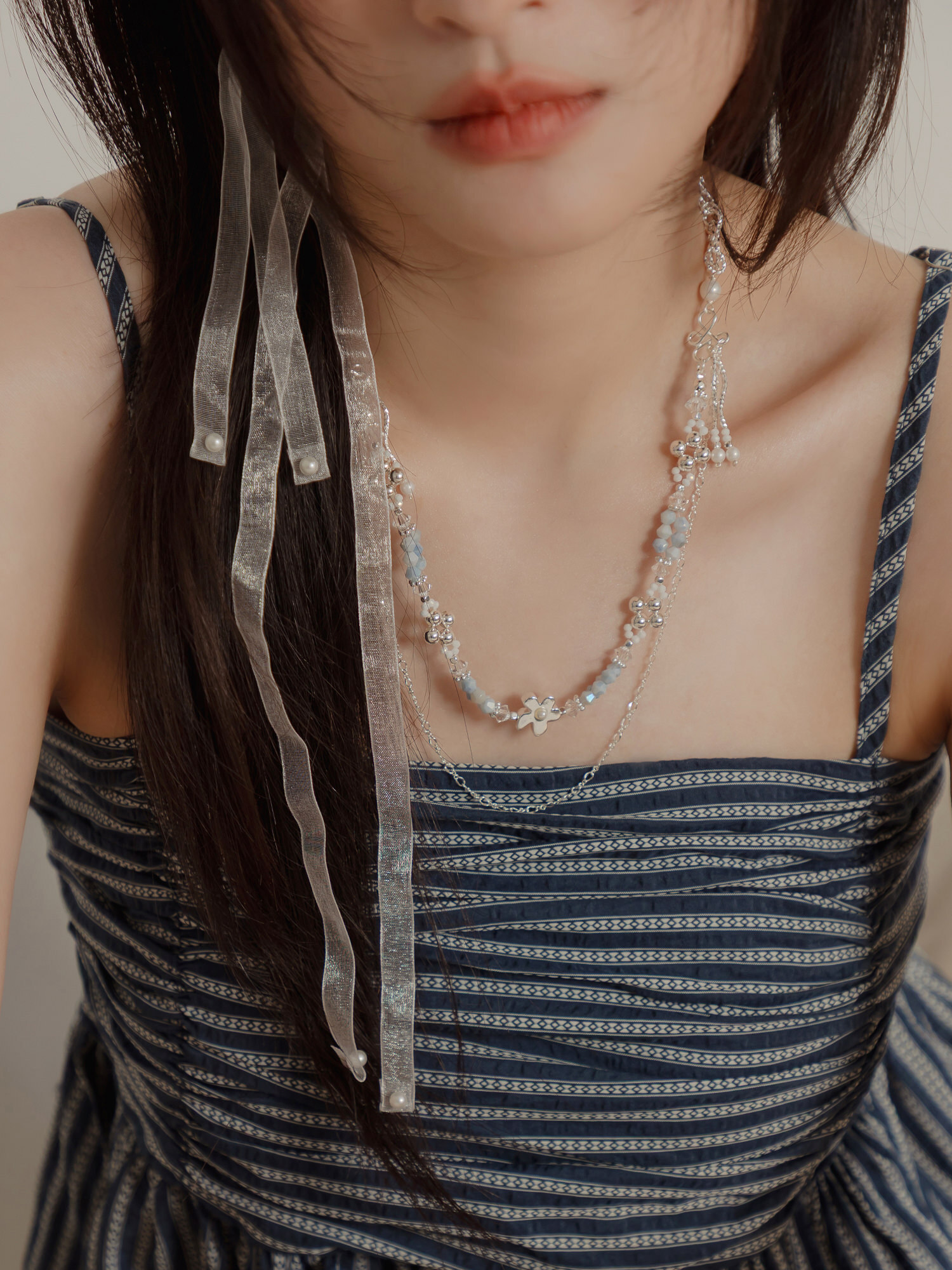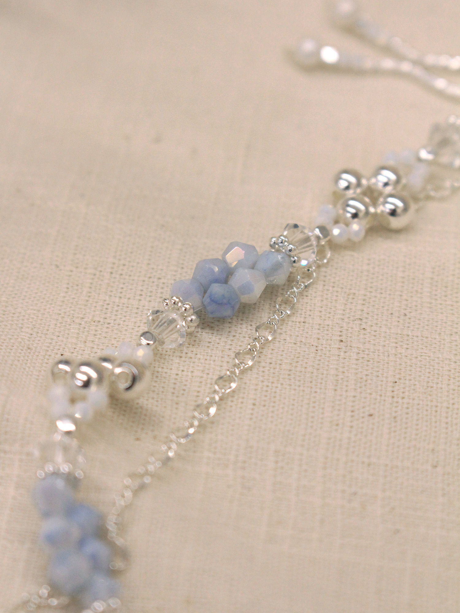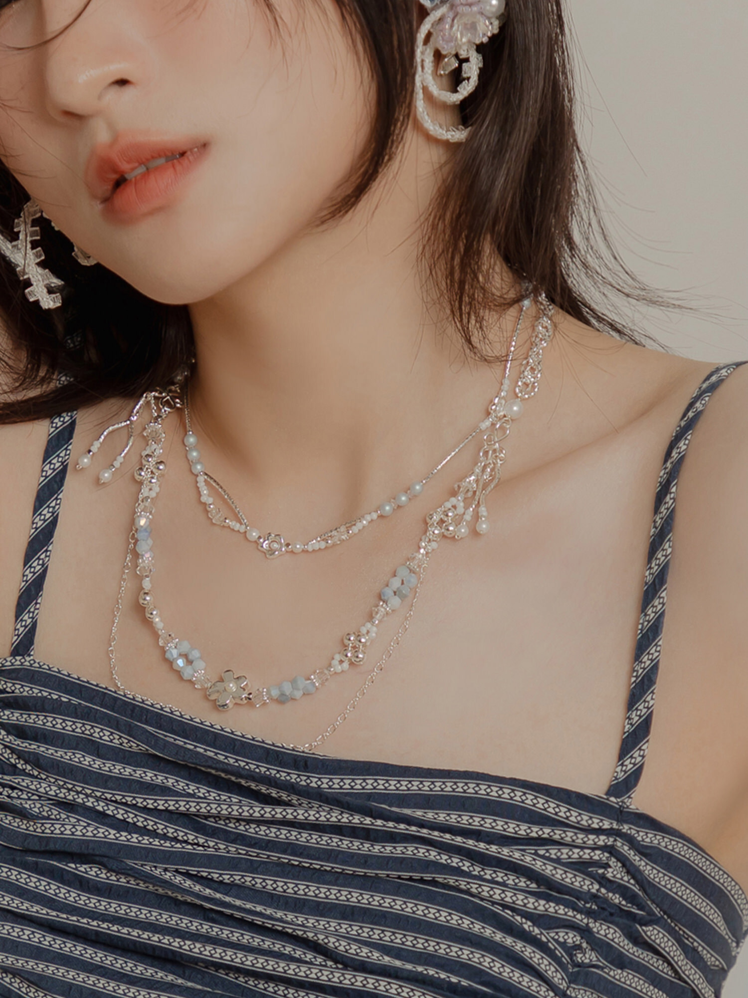 ▸ 素材:銅鍍銀、仿珠、白水晶珠、三角水晶珠、串珠等複合材質