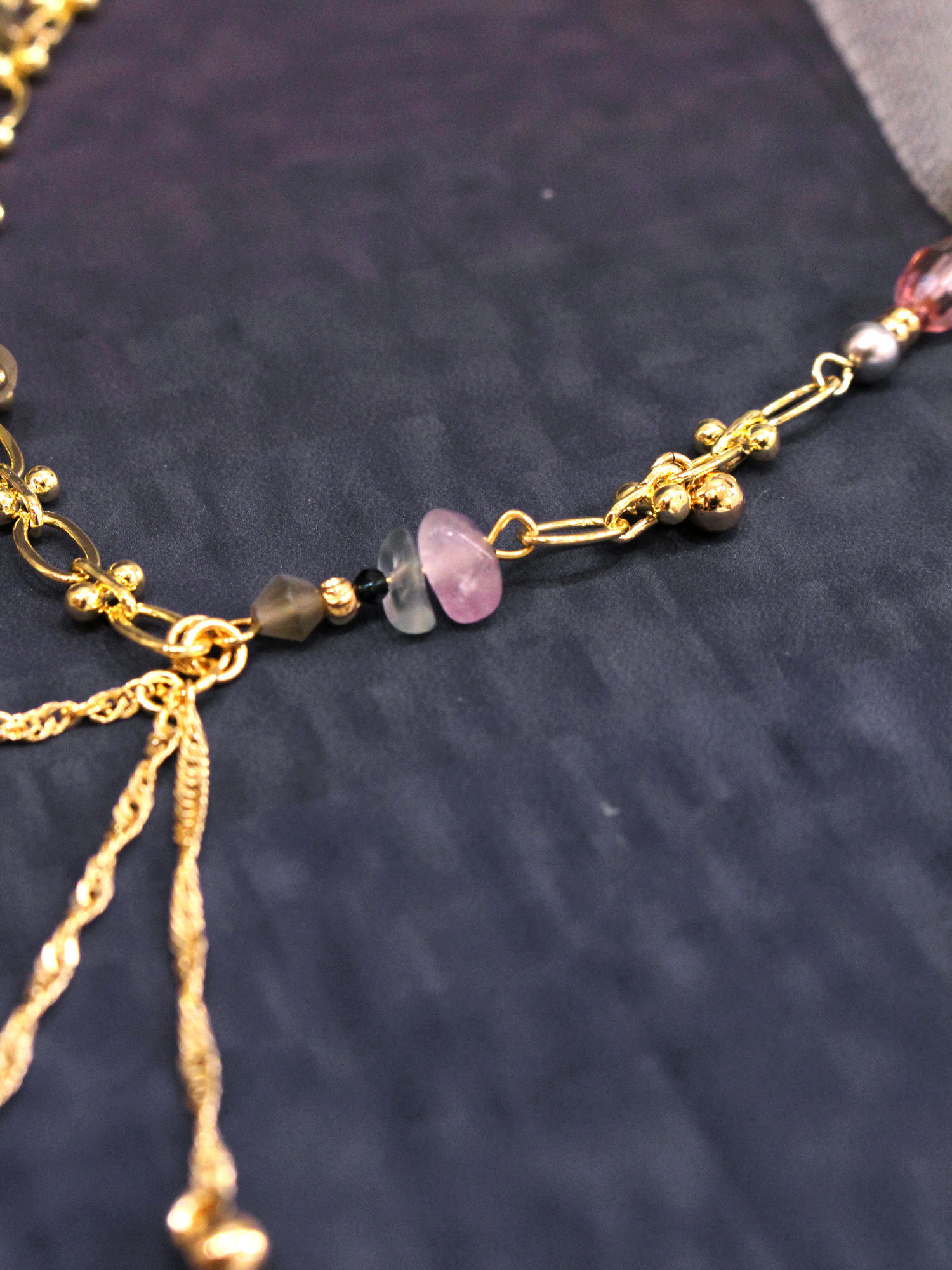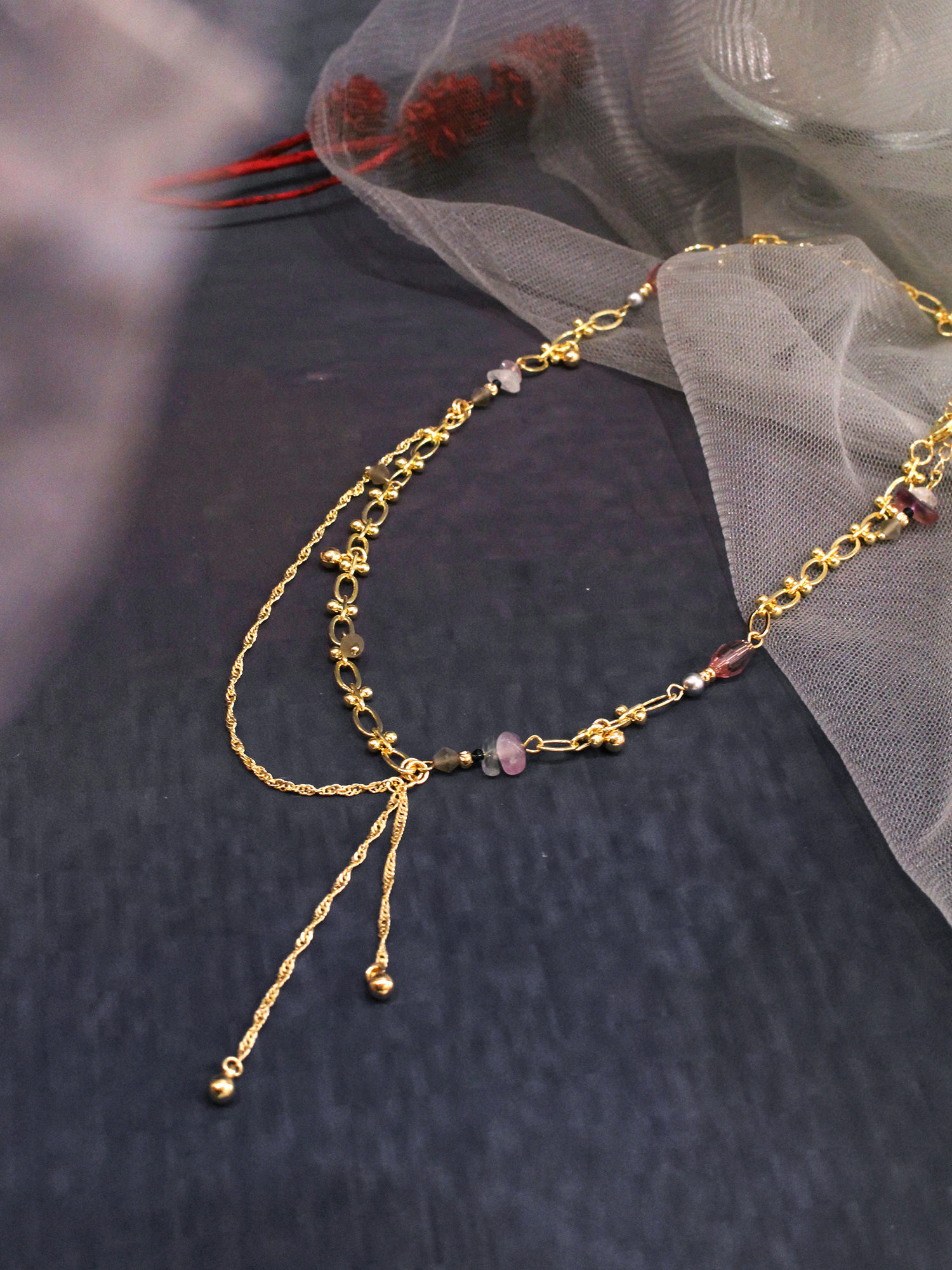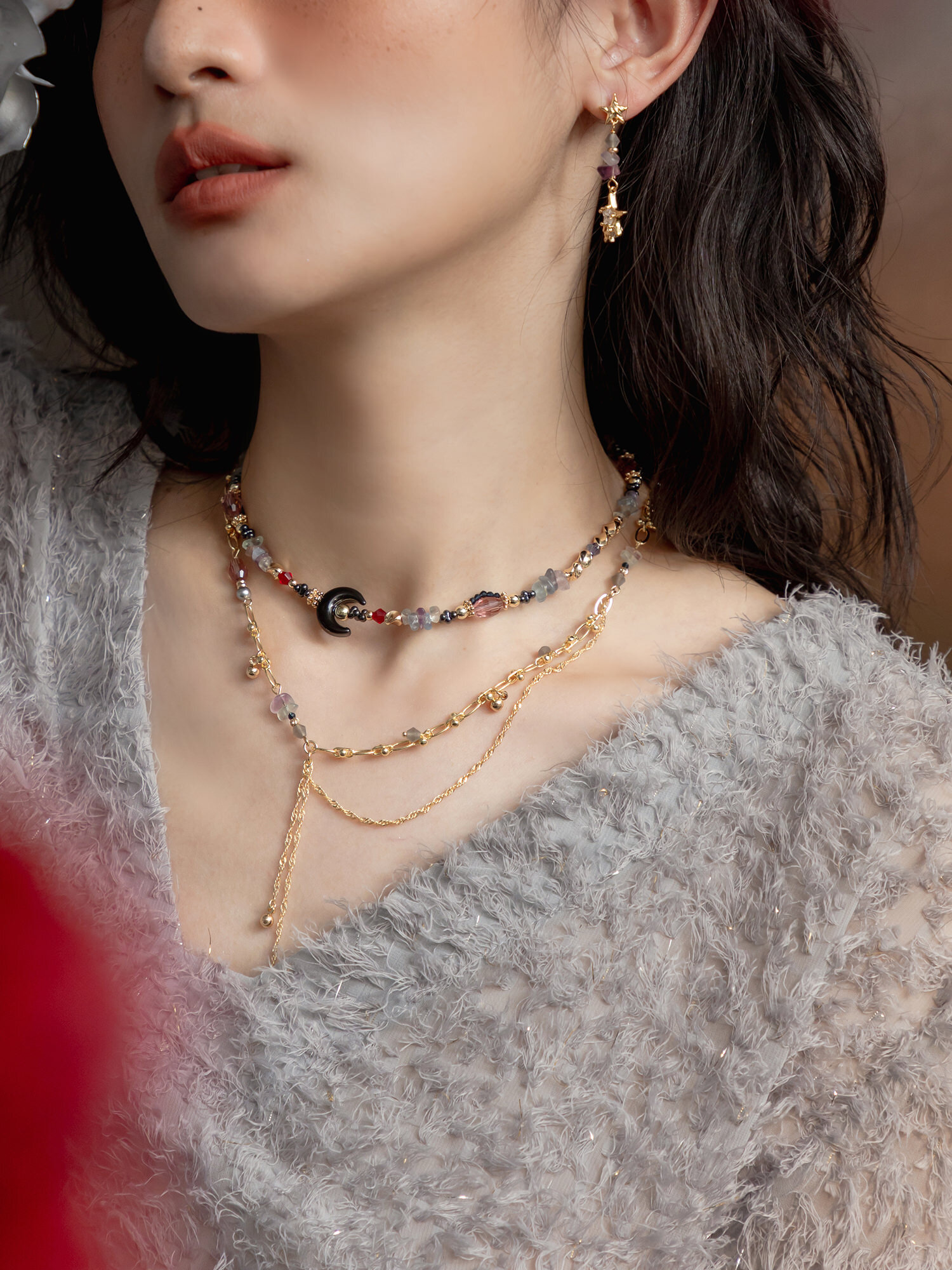 ▸ 素材:銅鍍14KGP、螢石、水晶珠、橄欖珠、串珠等複合材質