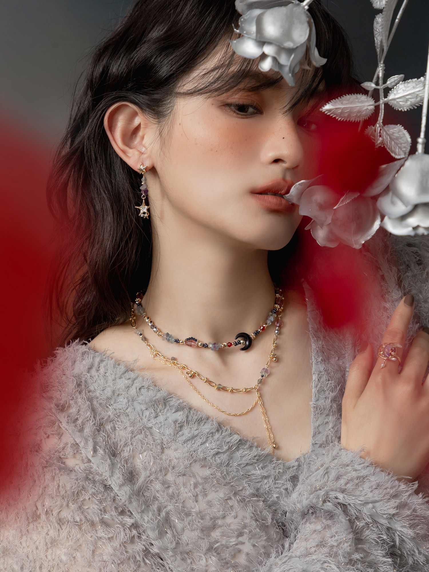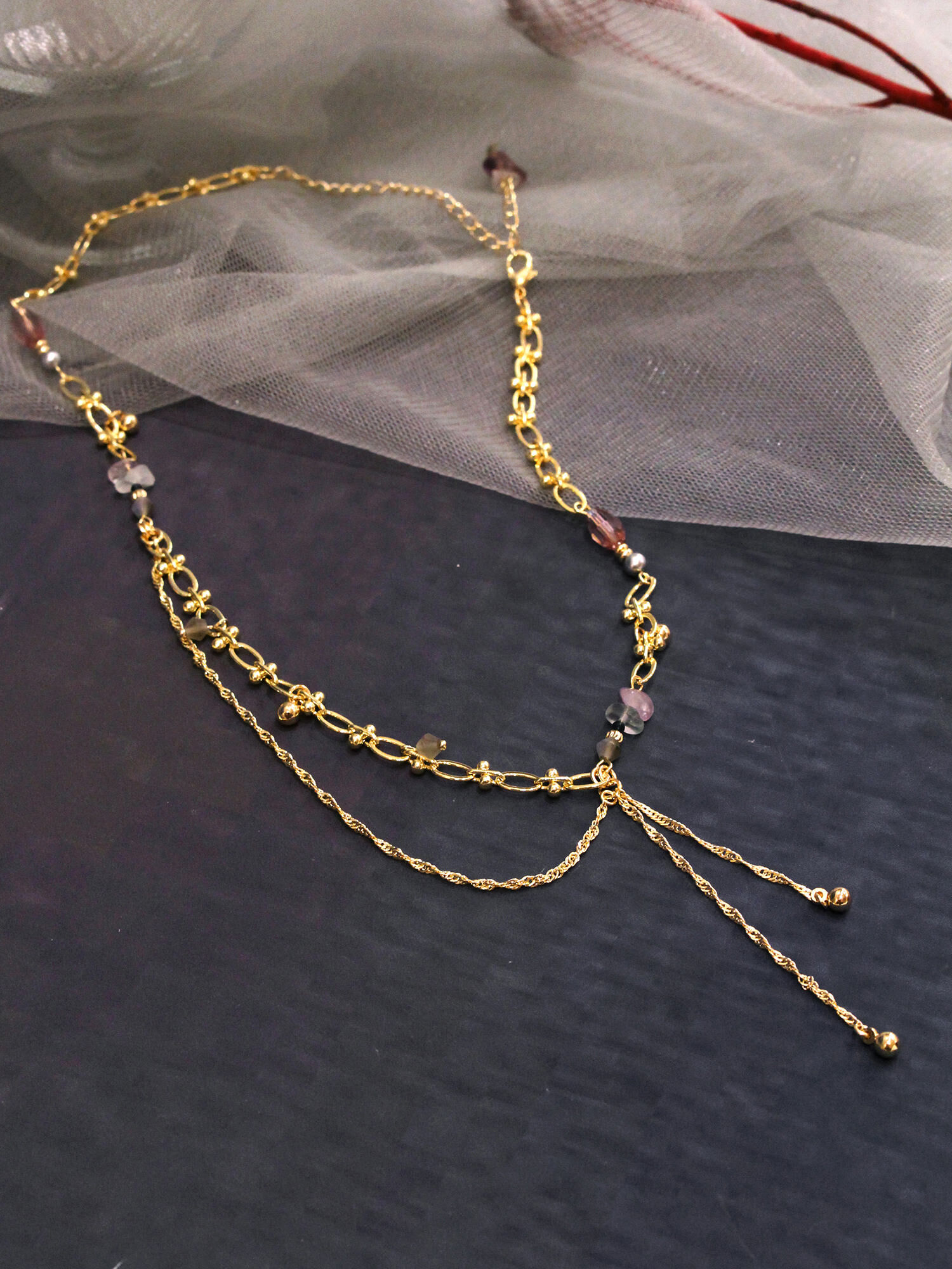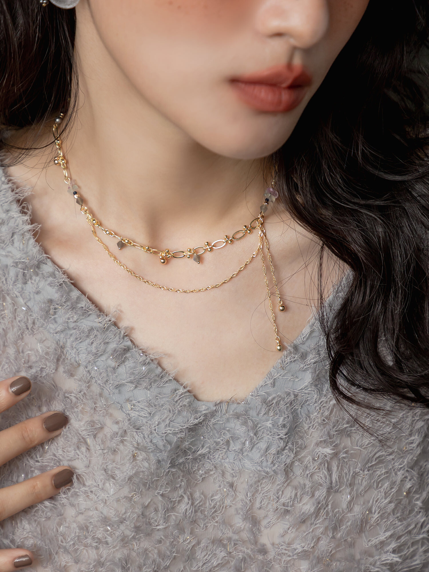▸ 素材:銅鍍14KGP、螢石、水晶珠、橄欖珠、串珠等複合材質