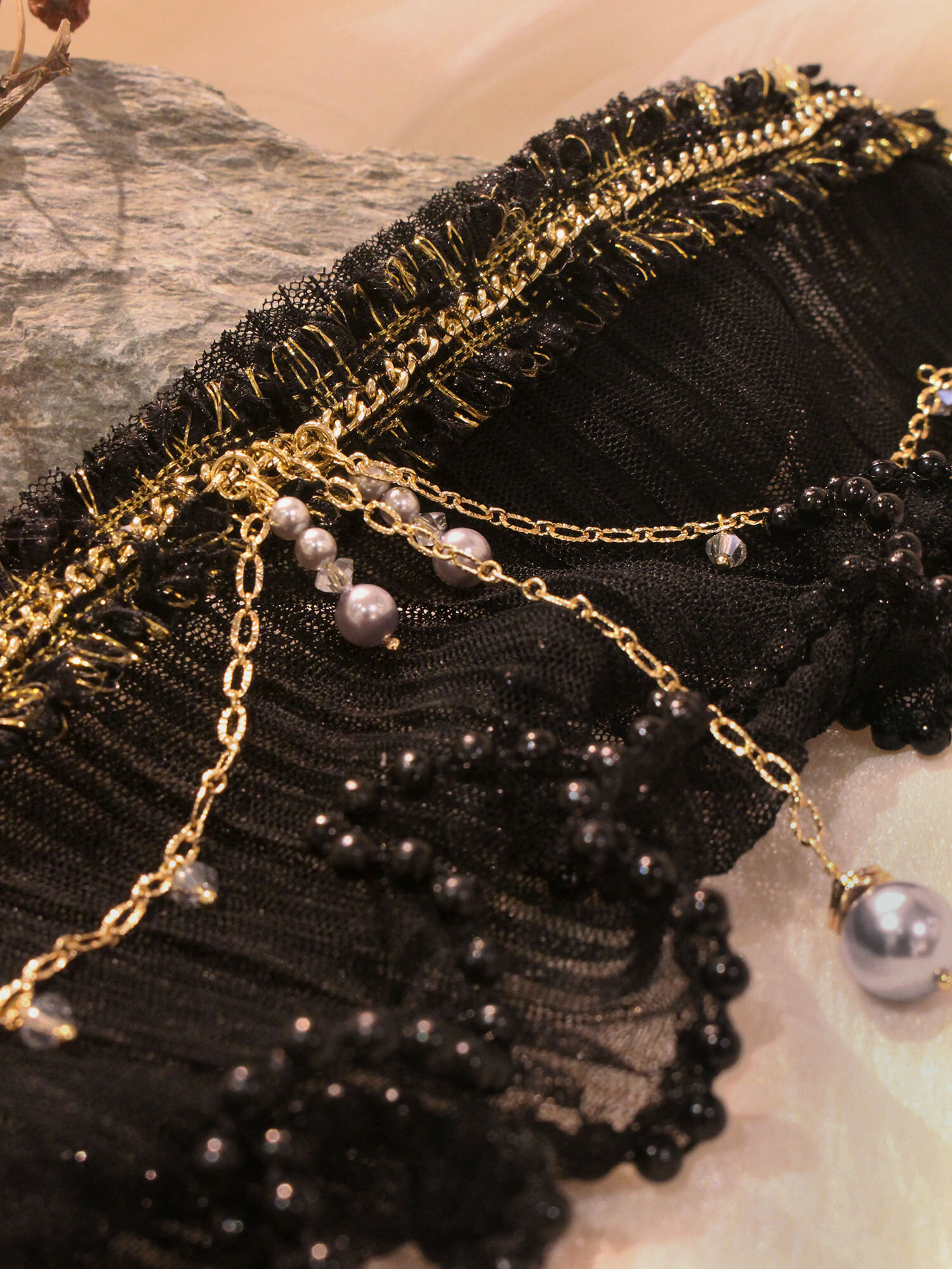 ▸ 水晶、貝殼、天然珍珠為天然材料,混色與花紋每款或有差異,鍍金屬不均、斑點、刮痕與凹洞為正常,非瑕疵。