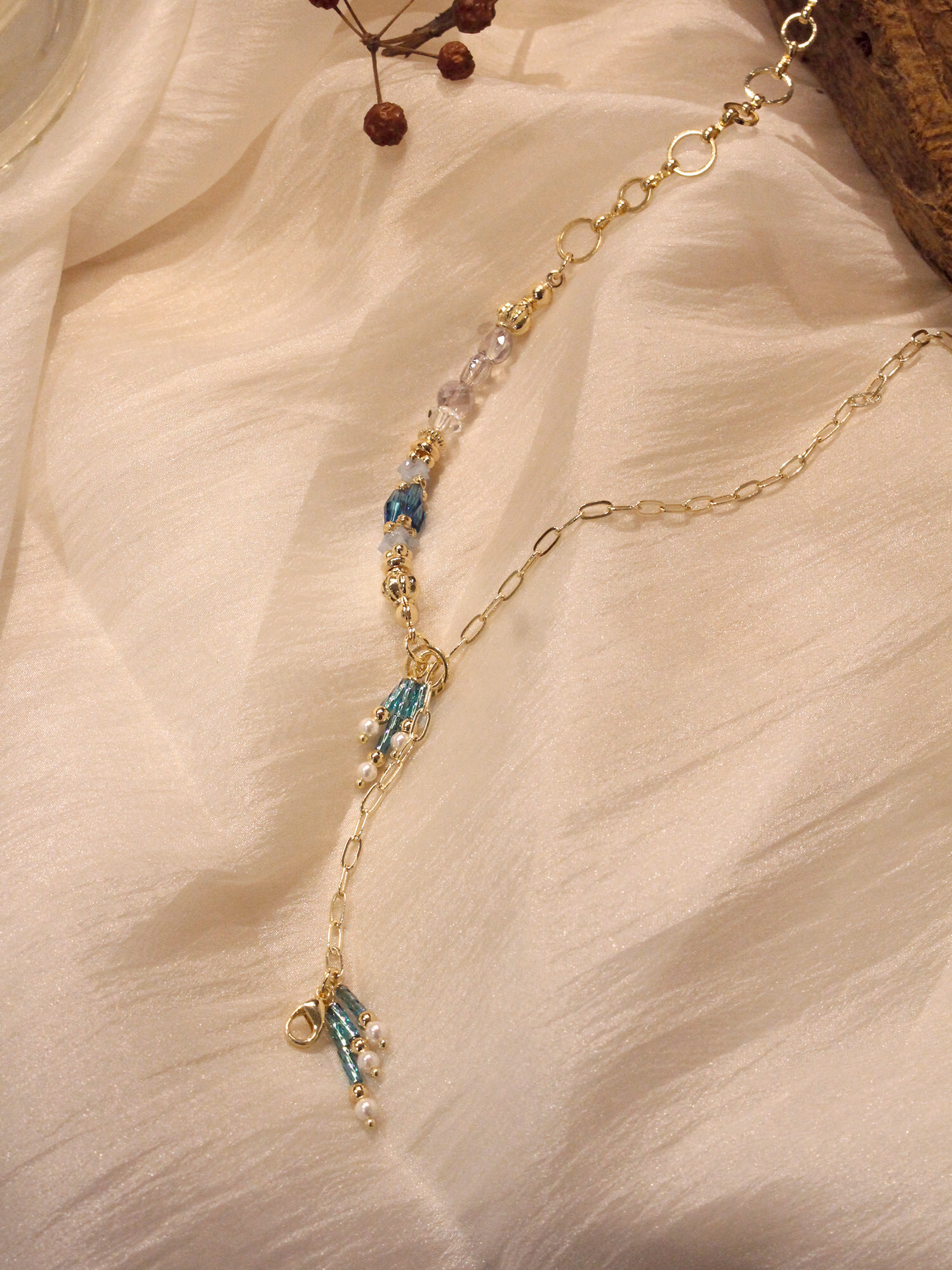 ▸ 素材:銅鍍14KGP、仿珠、水晶珠、串珠、燈籠珠等複合材質
