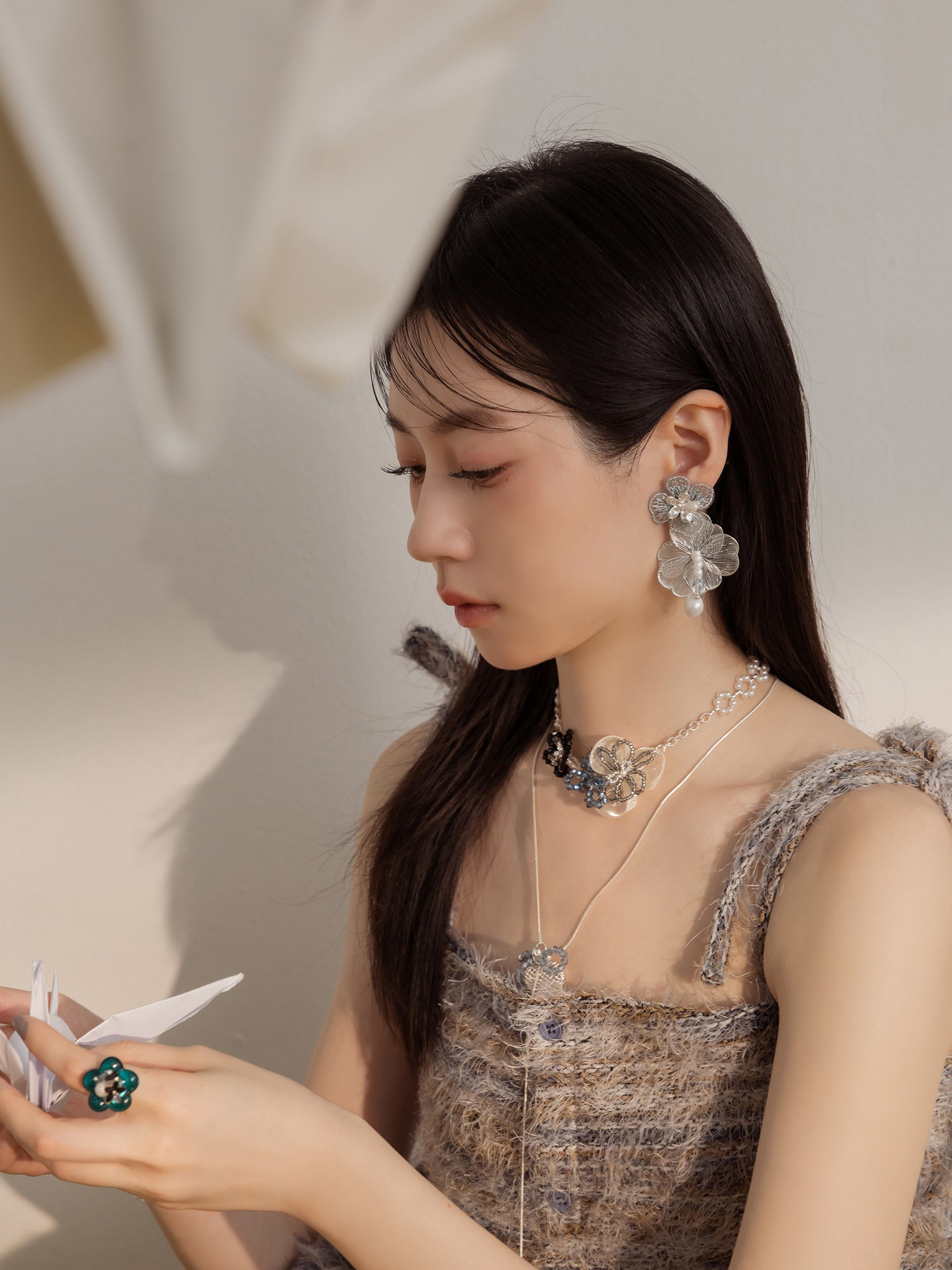 ▸ 素材:銅鍍銀、仿珠、串珠、亮片、水晶珠等複合材質
