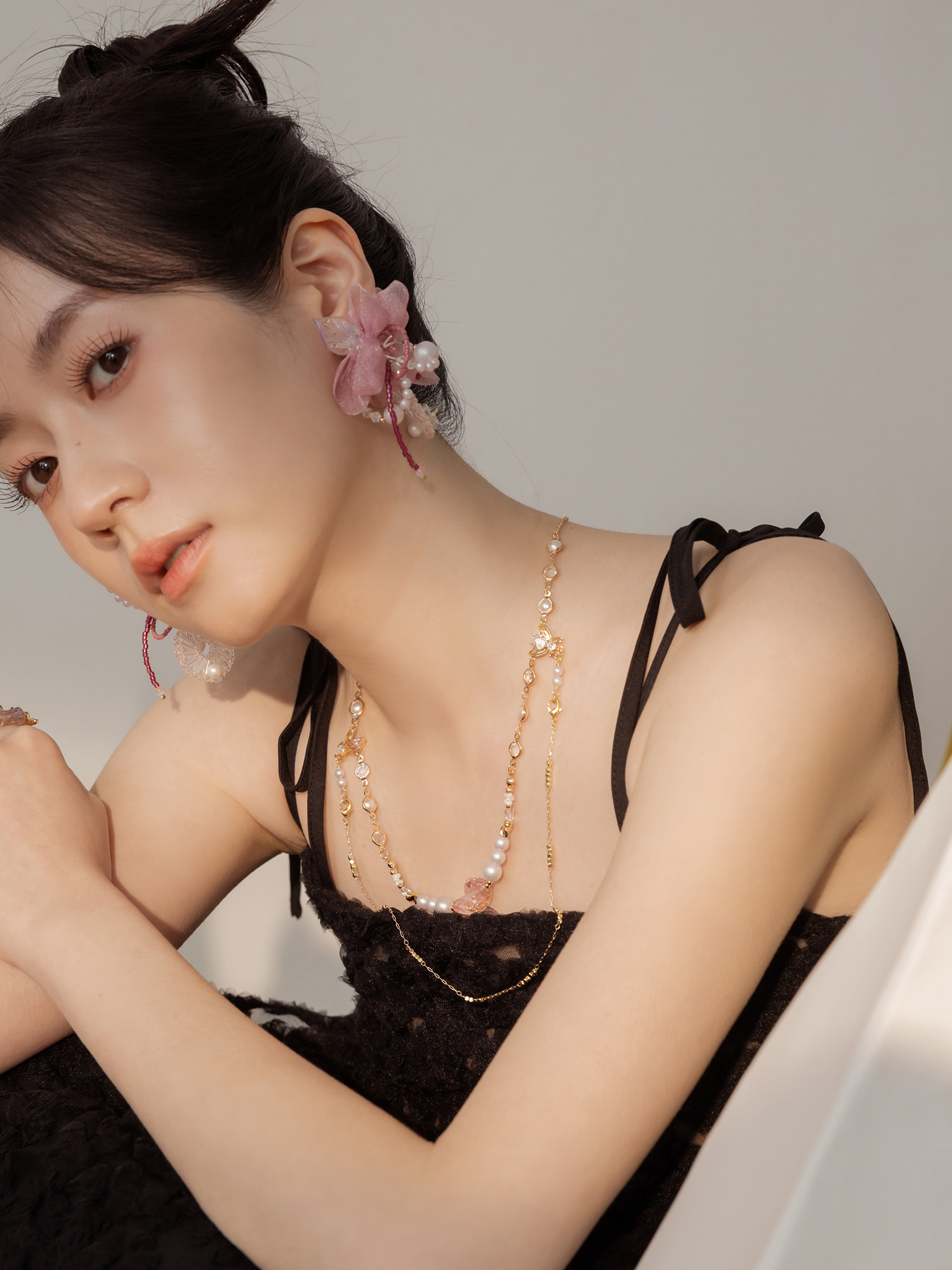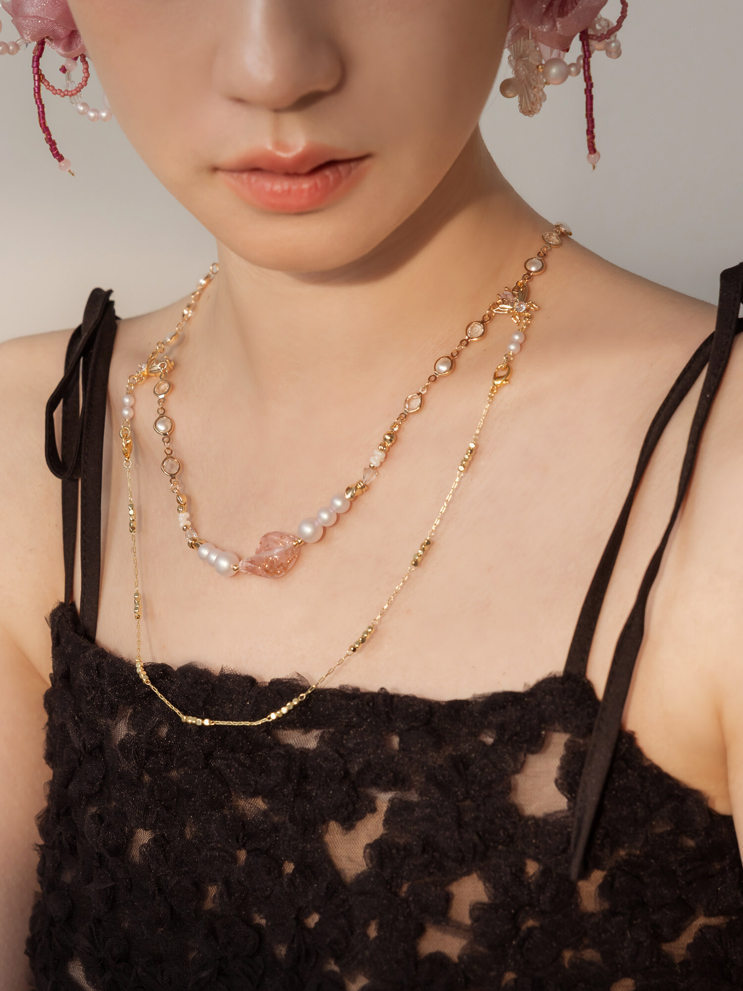 ▸ 素材:銅鍍14KGP、仿珠、鋯石、串珠、水晶珠、琉璃等複合材質