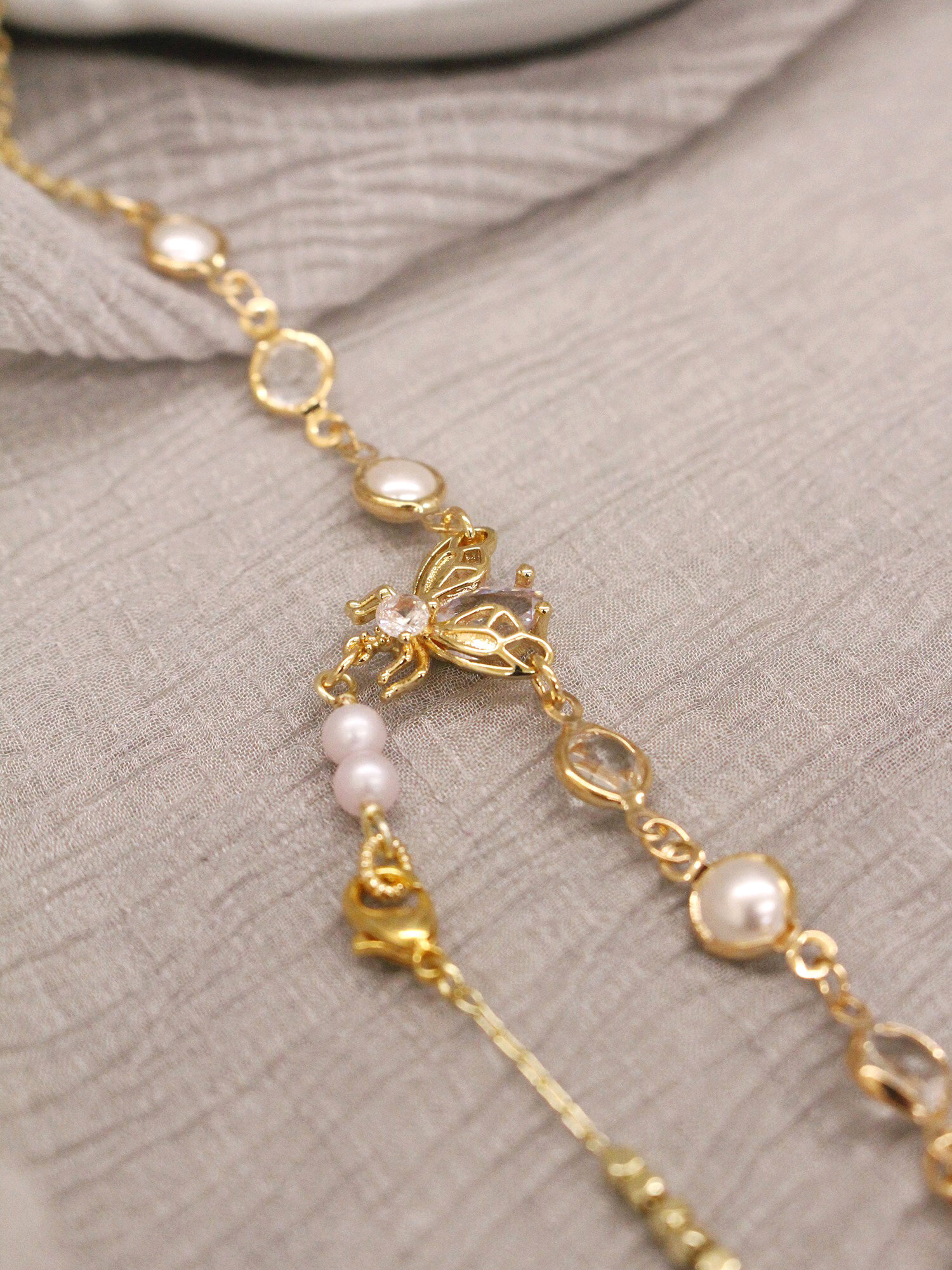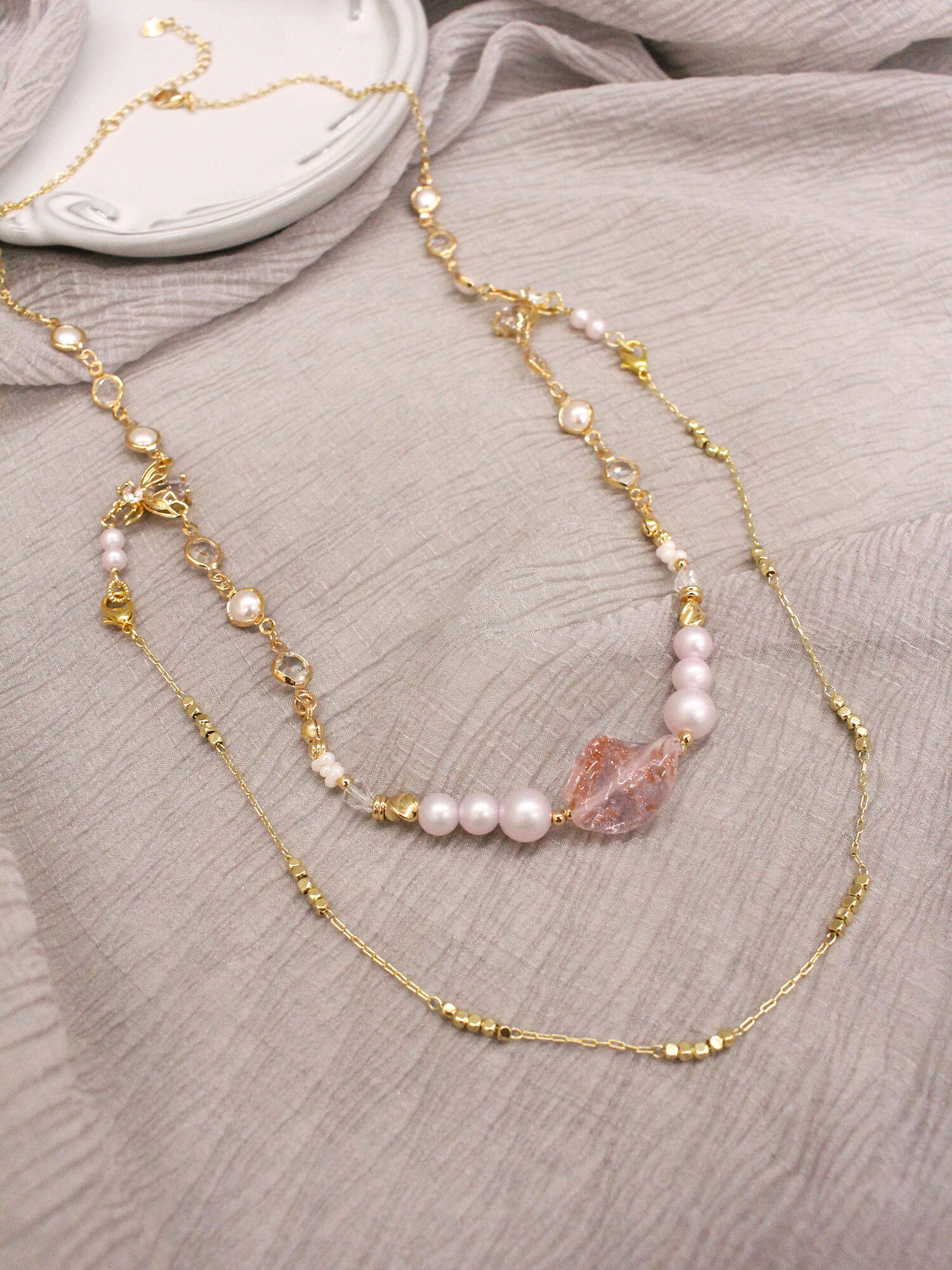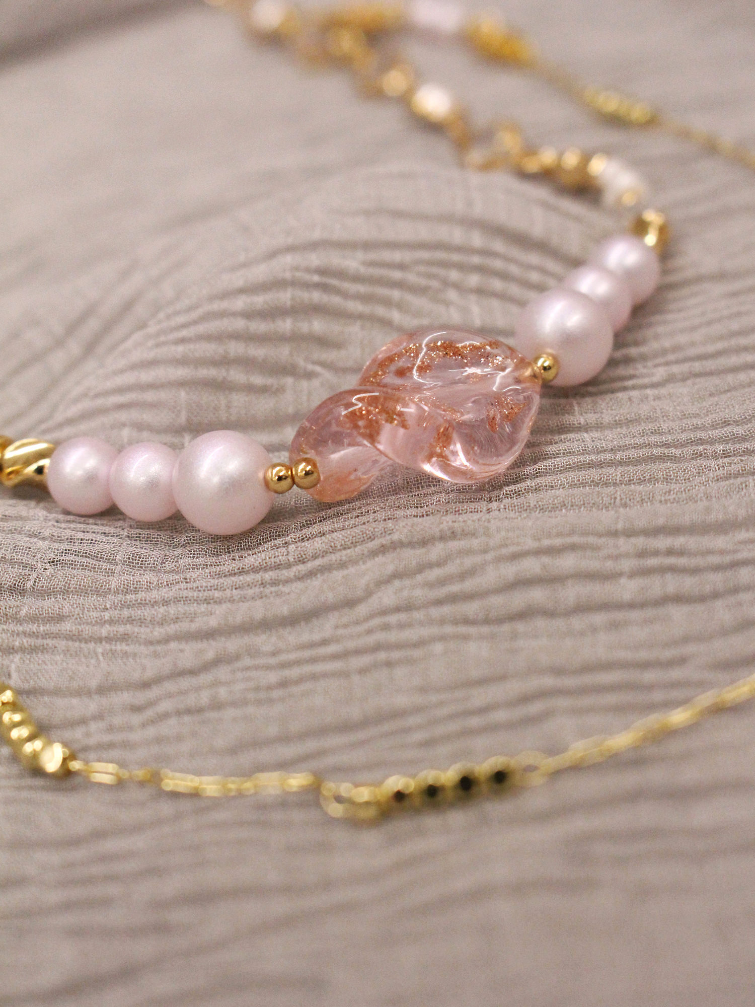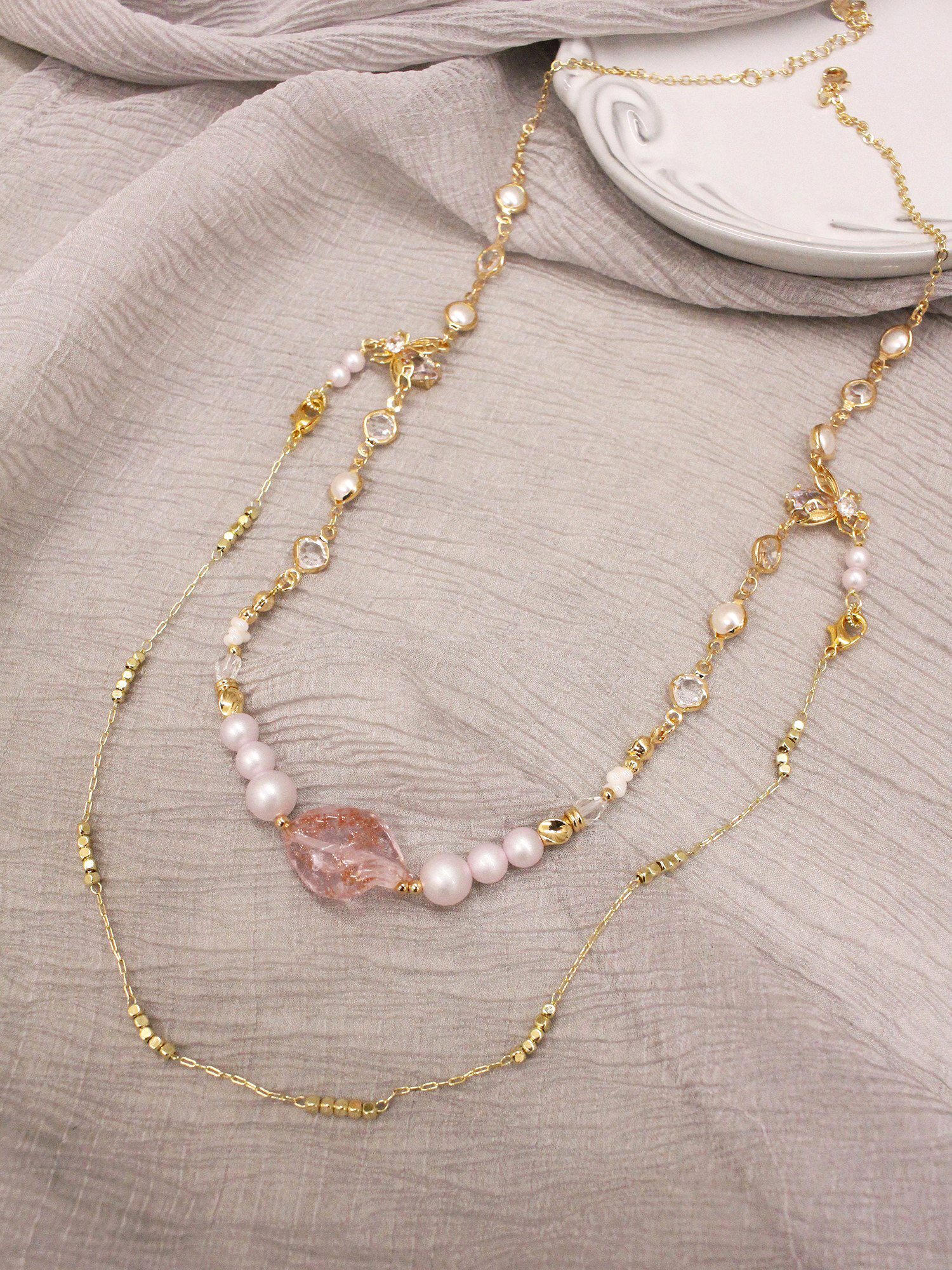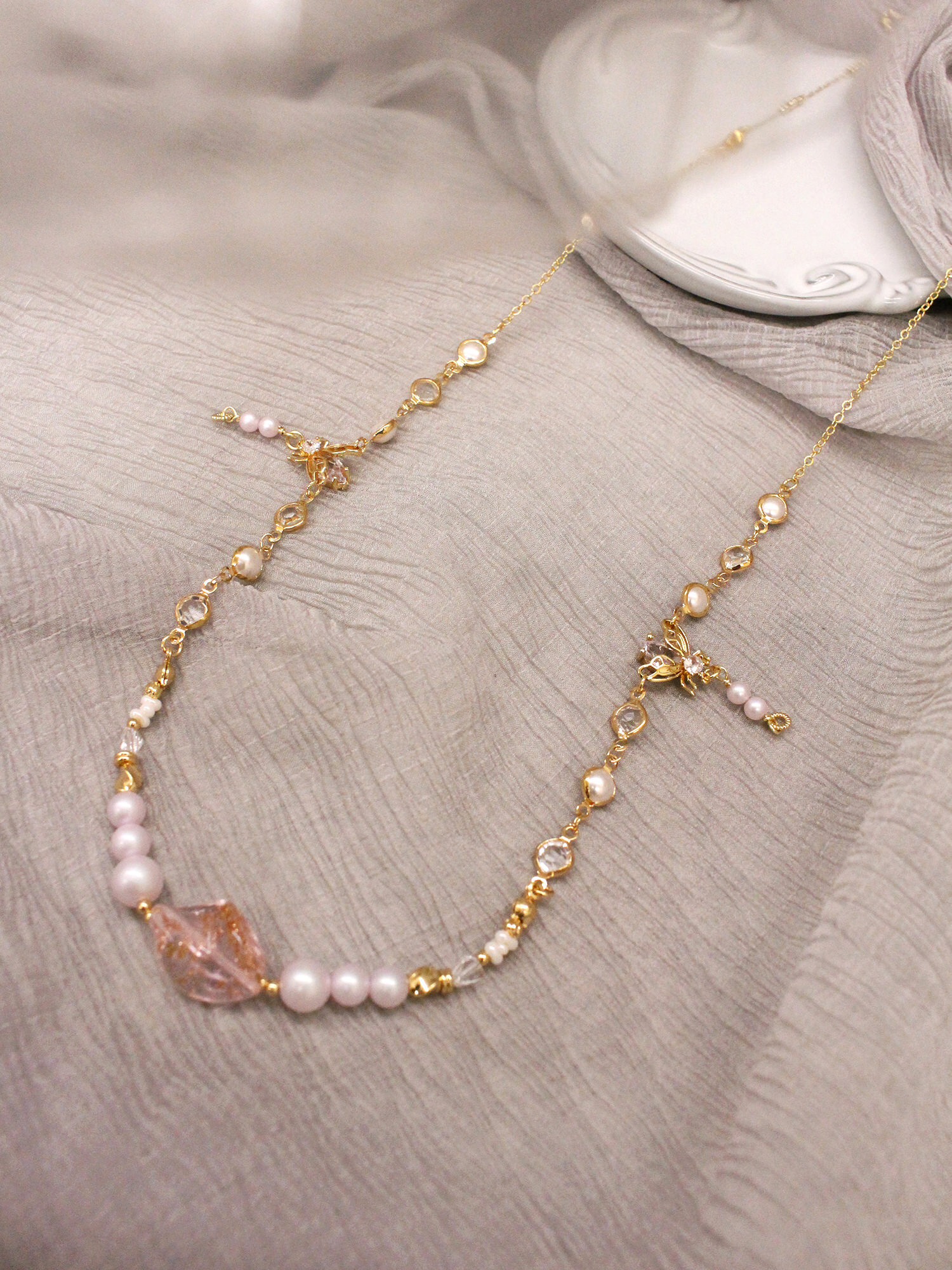 ▸ 水晶、貝殼、天然珍珠為天然材料,混色與花紋每款或有差異,鍍金屬不均、斑點、刮痕與凹洞為正常,非瑕疵。