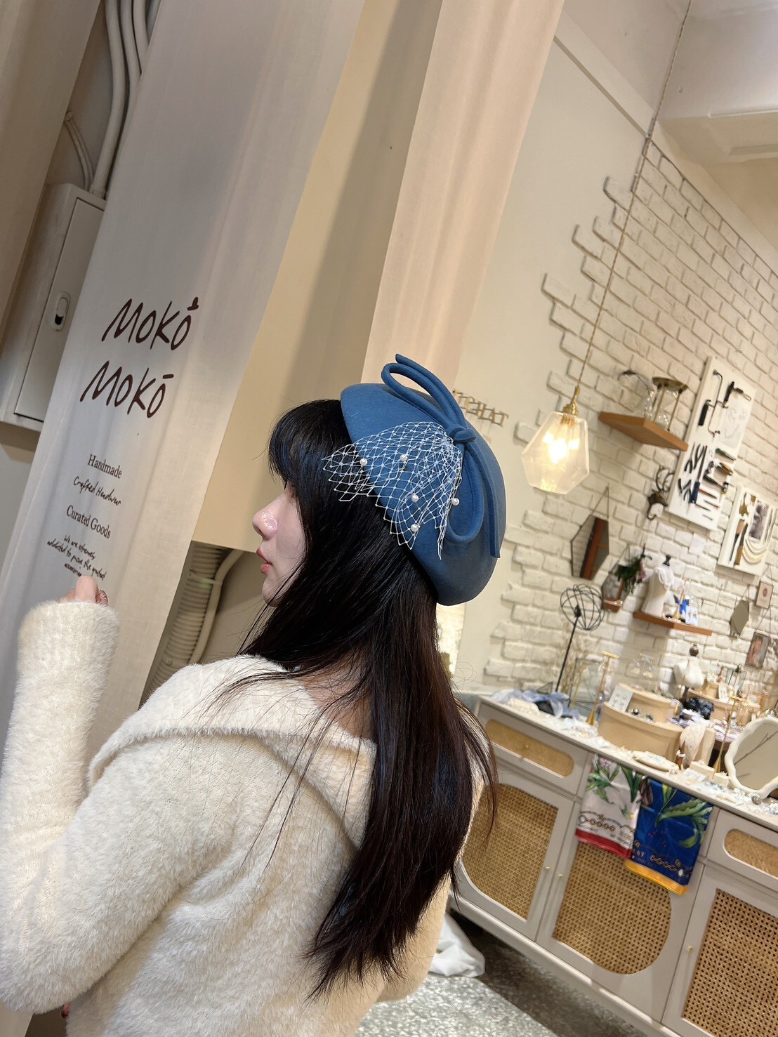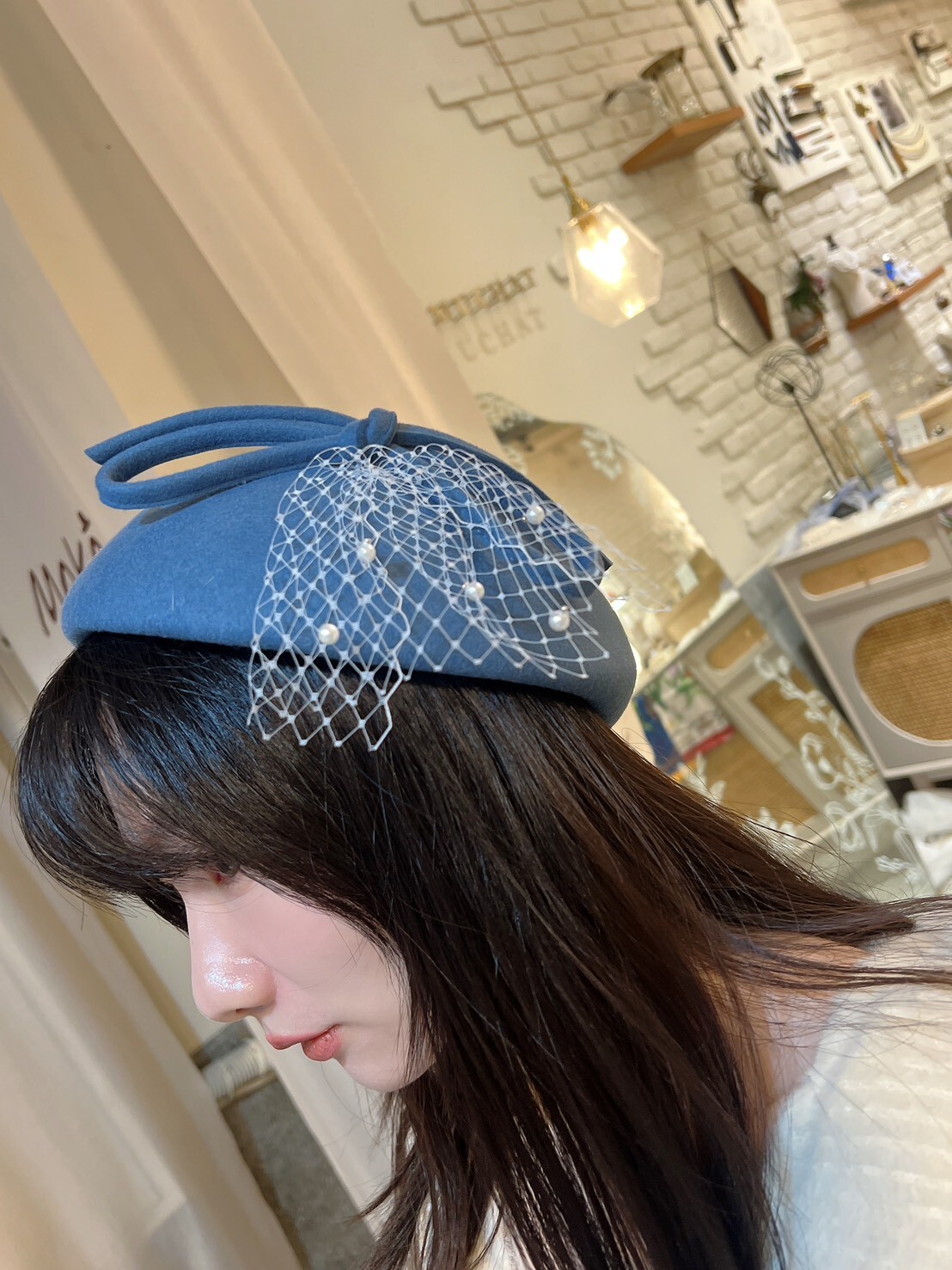 隱藏款。100%羊毛網紗禮帽(藍)