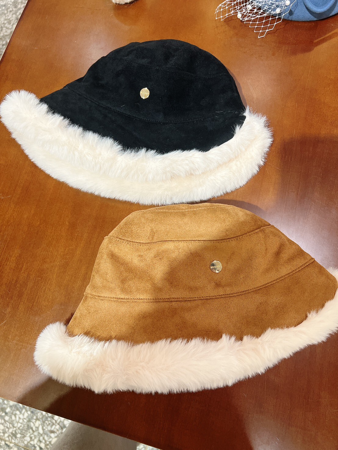 隱藏款。內絨毛麂皮漁夫帽(黑/咖)